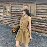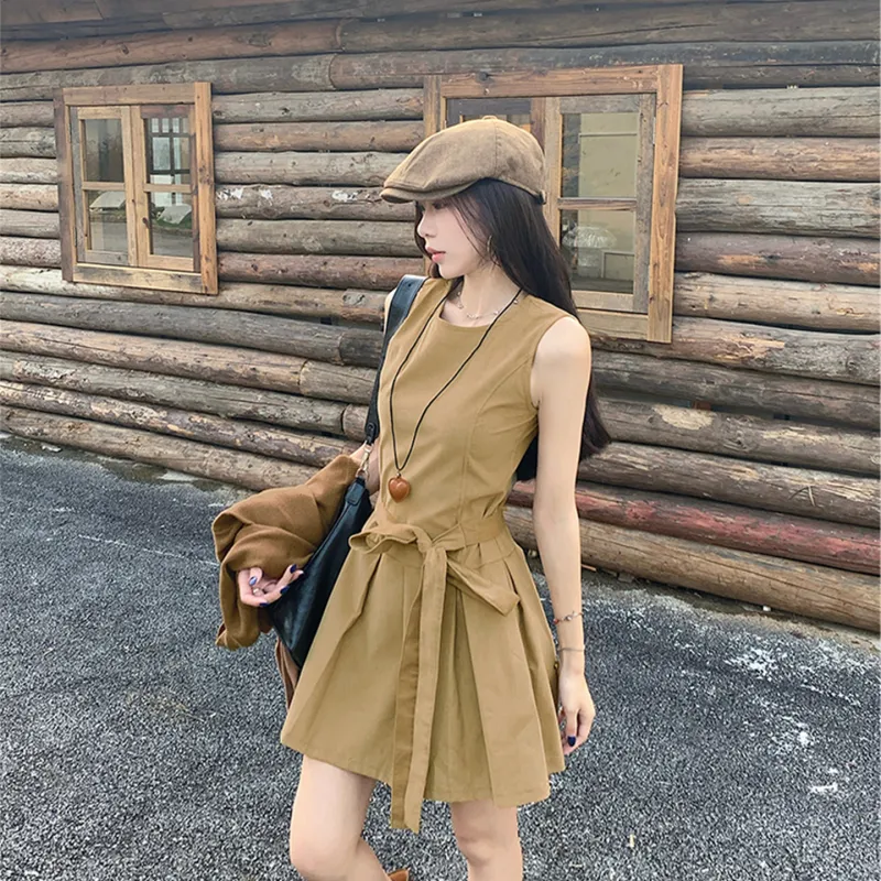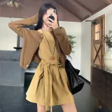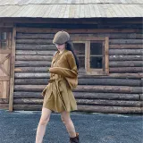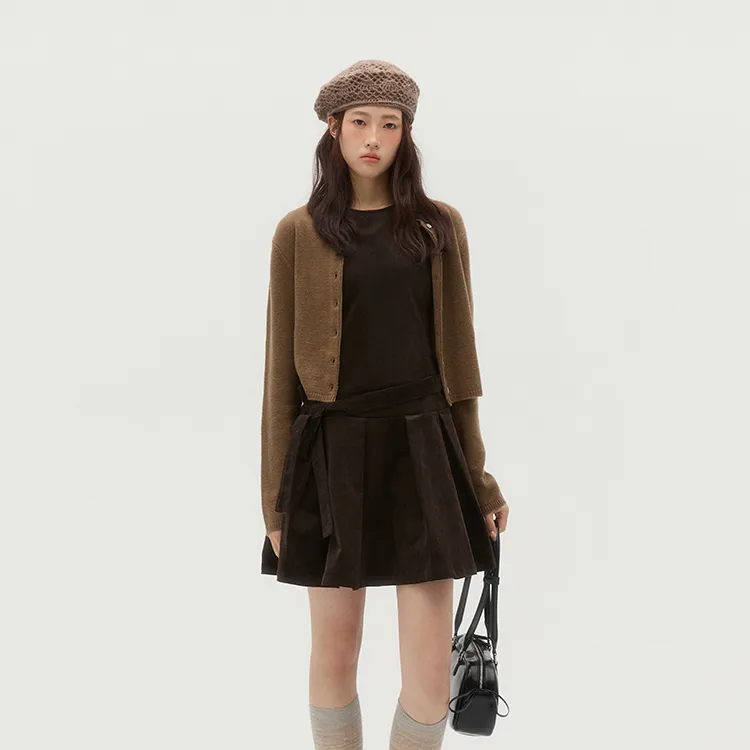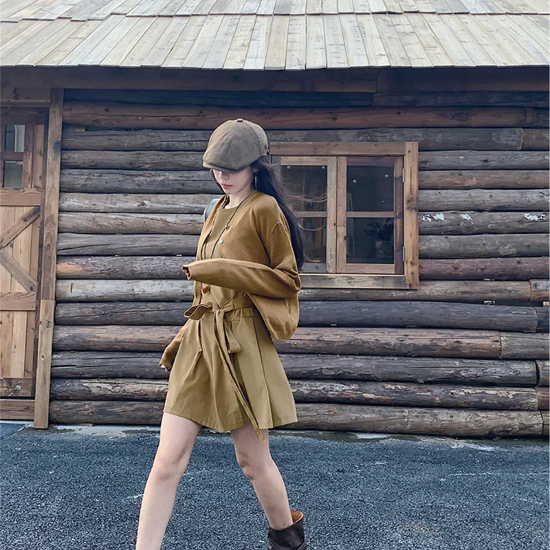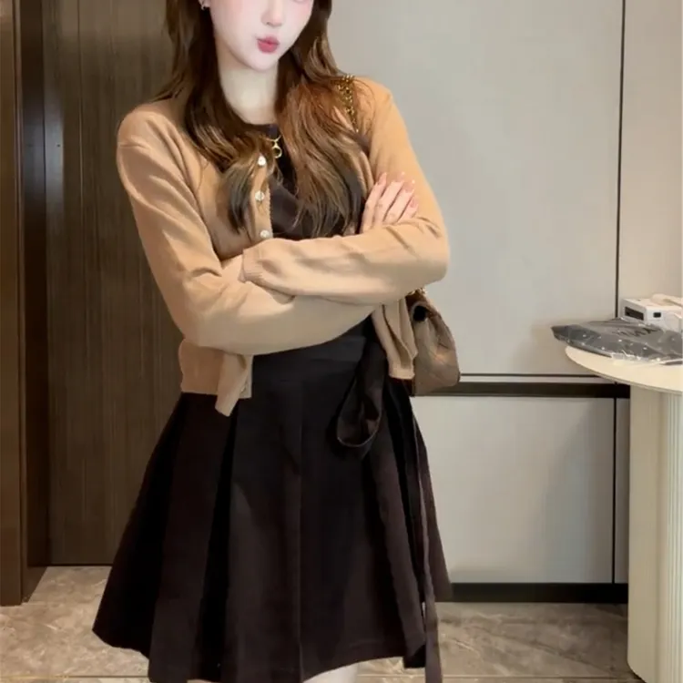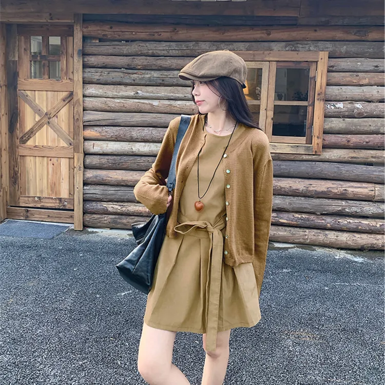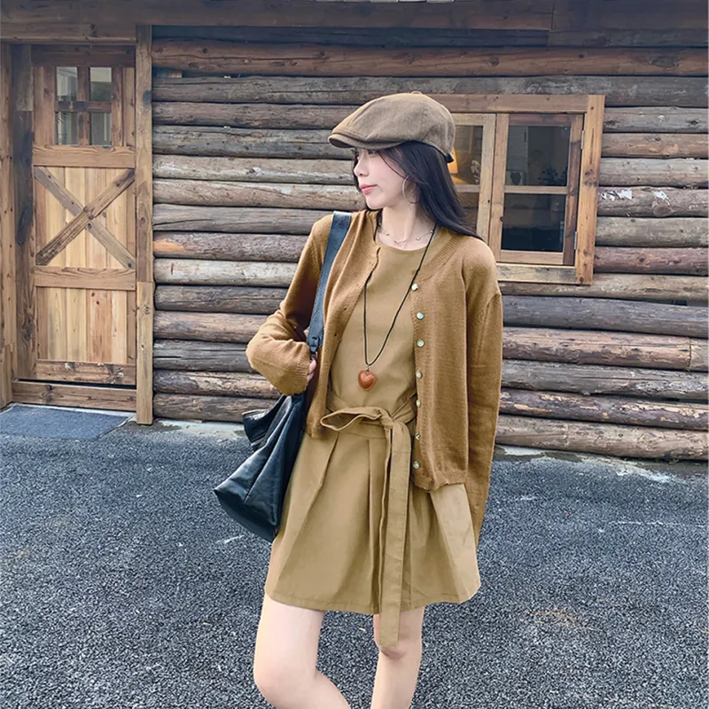 Комплект:Кофейный кардиган + хаки платье