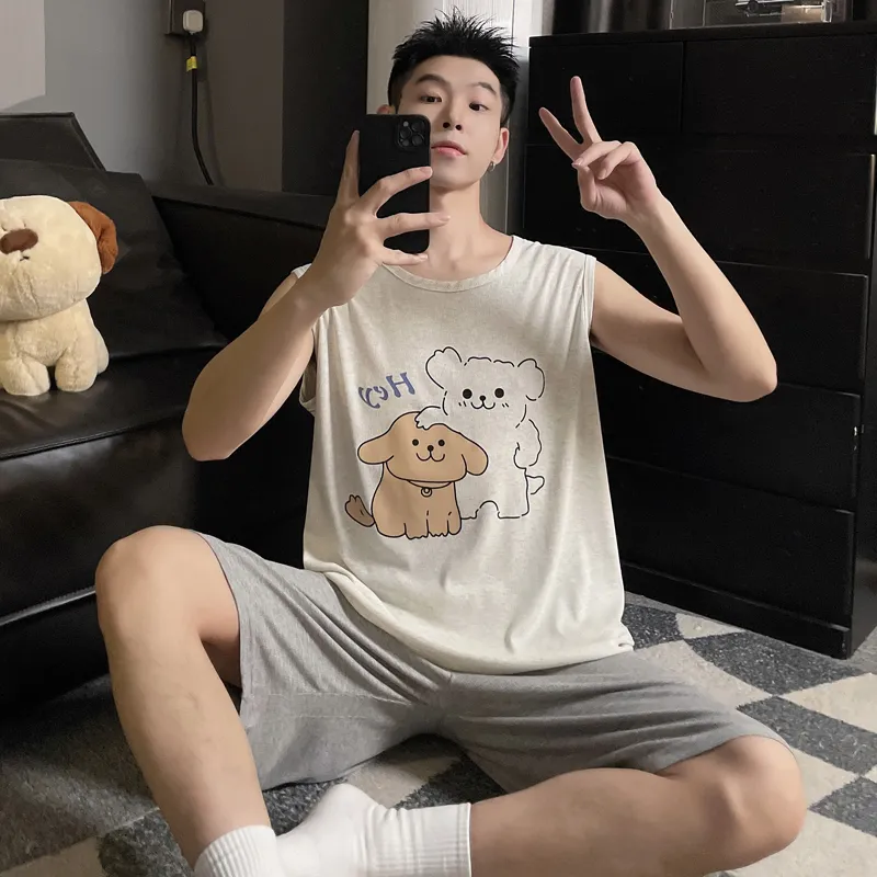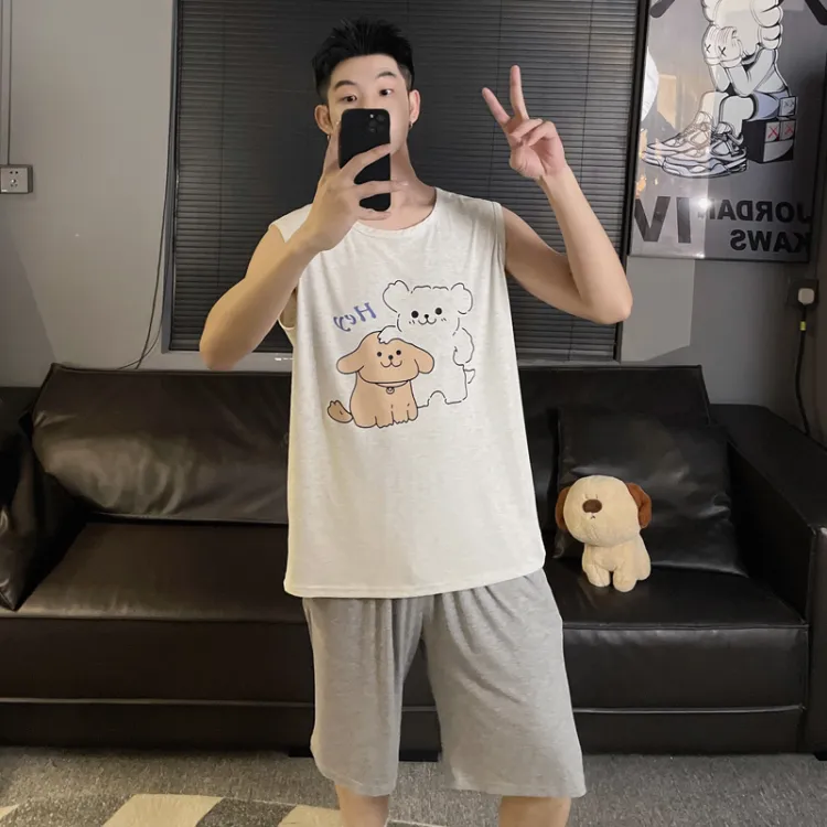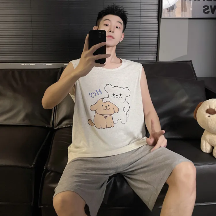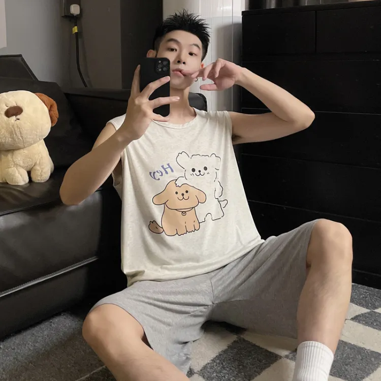 QIAONITONG Линия Собака Мужской Пижамные комплекты