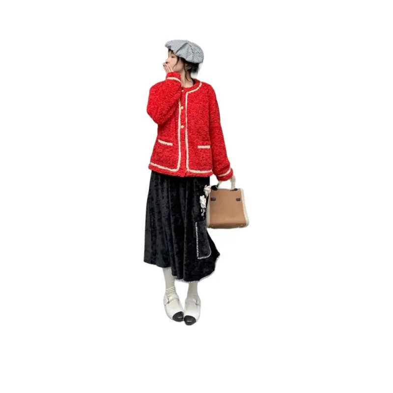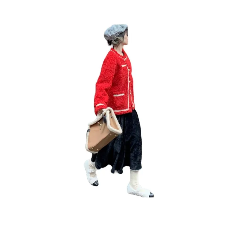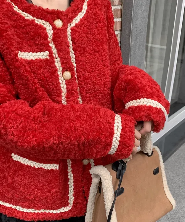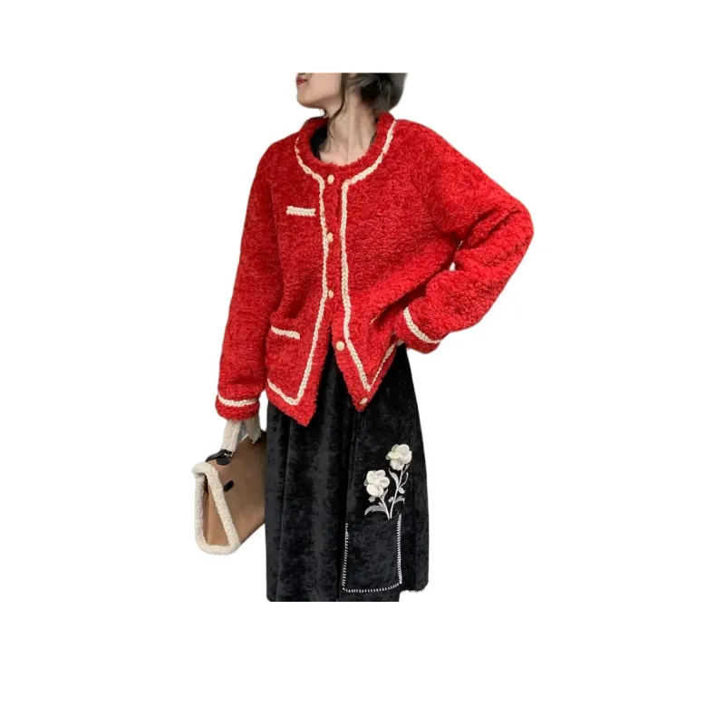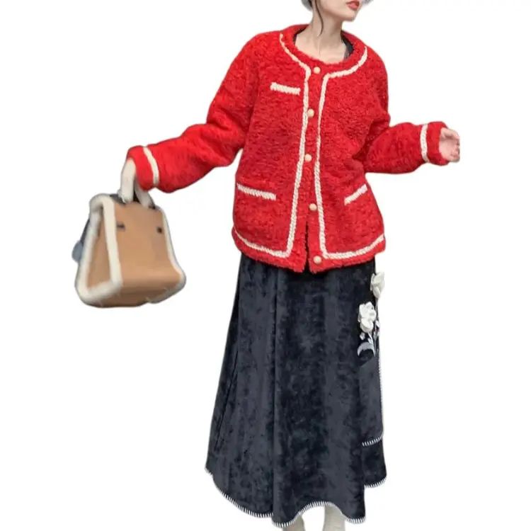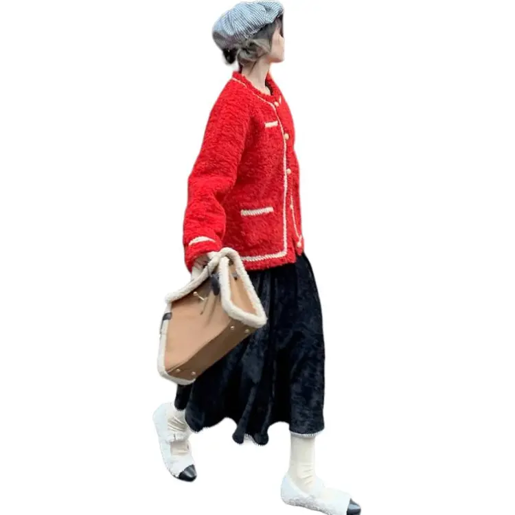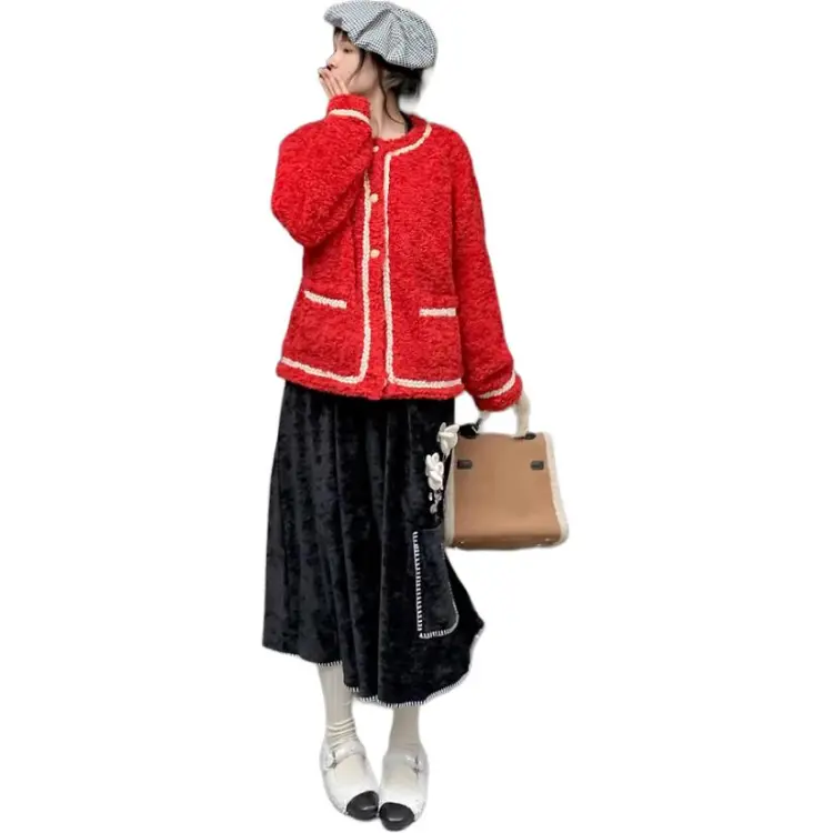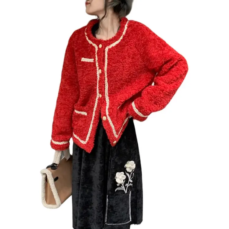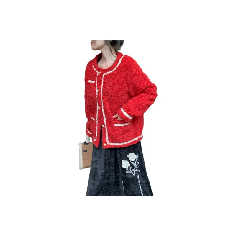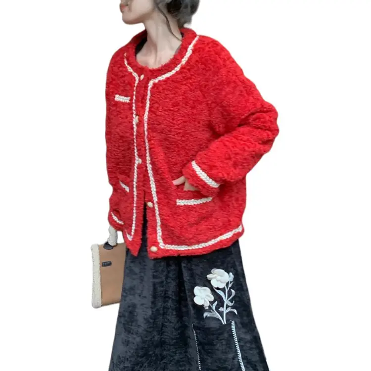 QIAOYUHUAZUN Вельвет Feel Куртка Женская Красная