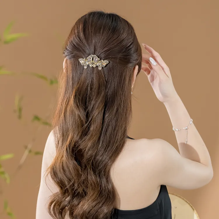 Стиль:Шампанское Золото Бабочка Сверкающий Горный Хрусталь Заколка для Волос