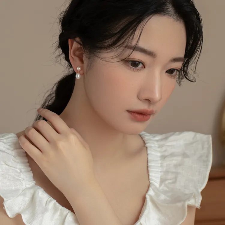 QIMEILA Серебро S925 Серьги-гвоздики Пресноводный жемчуг Женские