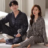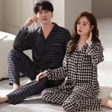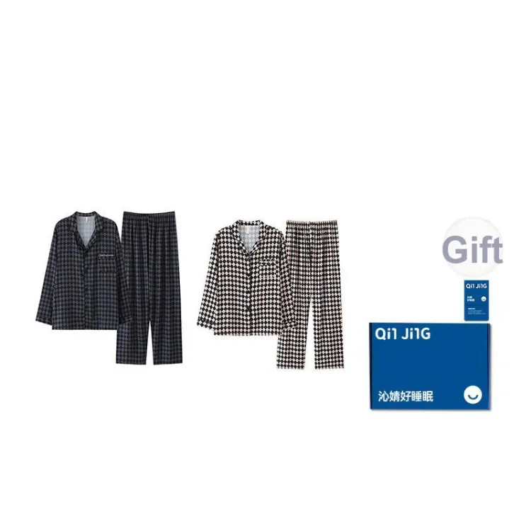 Qin Jing Пижамный комплект унисекс в узоре "гусиная лапка"