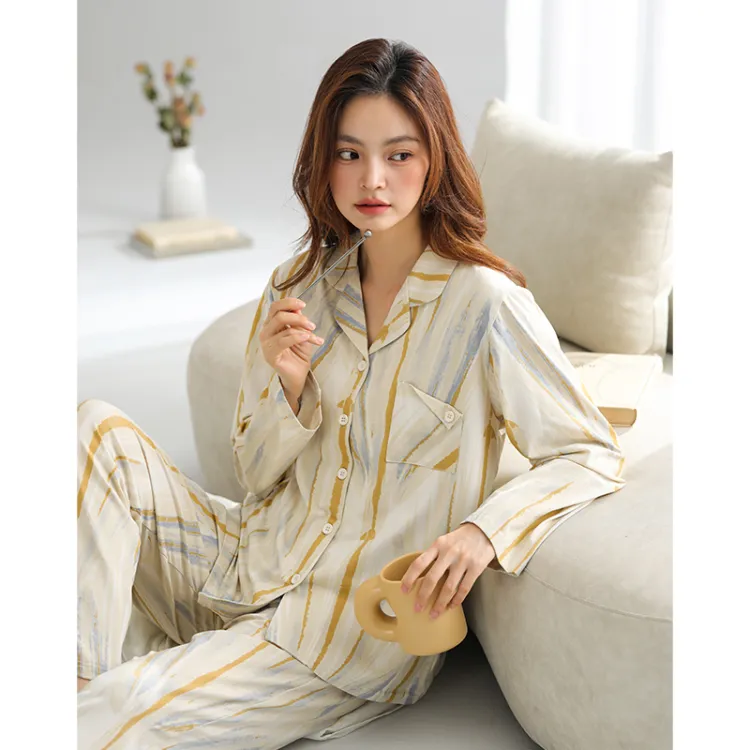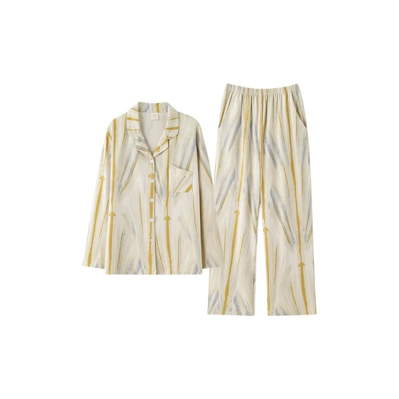 Qin Jing Пижамный комплект женский цветочный абрикосовый