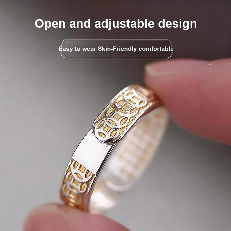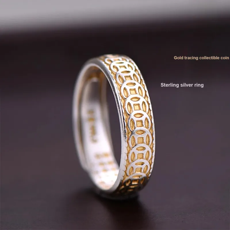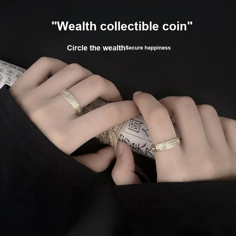 Золотая монета с узором, медное кольцо, открытое, *1 + изысканная упаковка *1