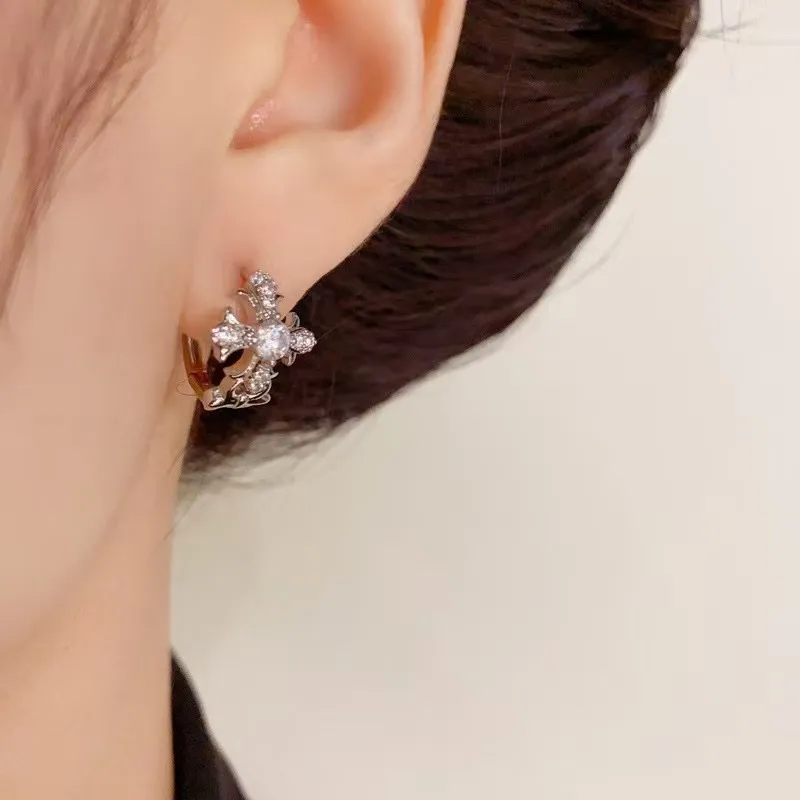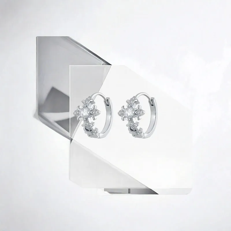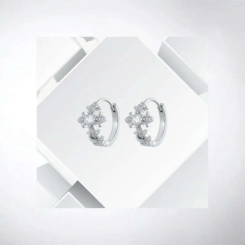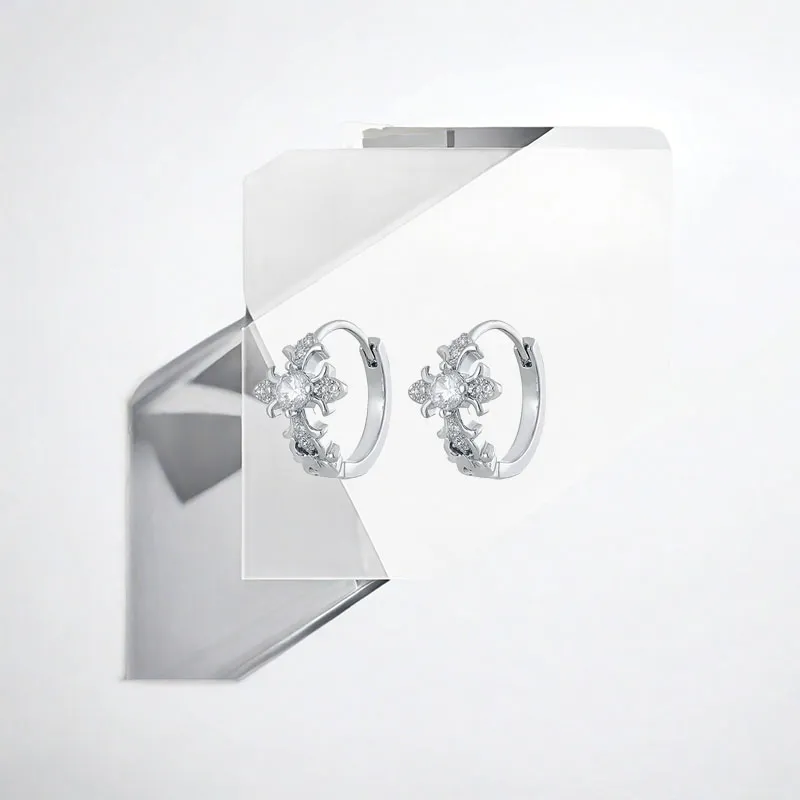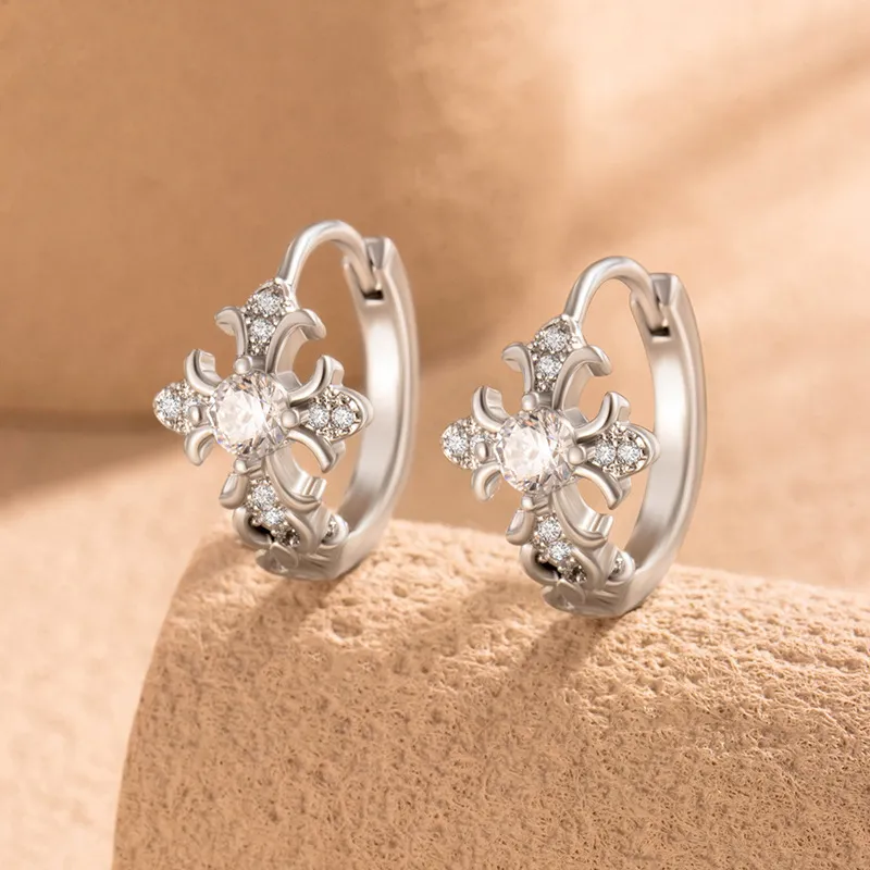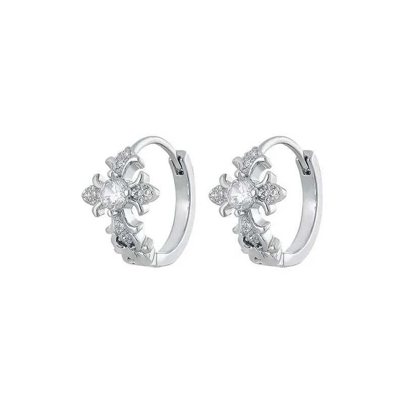 Стиль:Серьги-кольца с розовым белым цирконом в форме креста