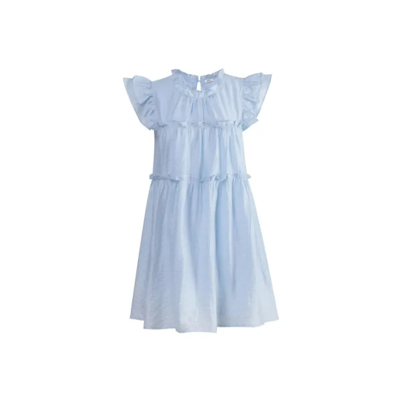 QINGLISI Детский синий женский короткий платье с короткими рукавами