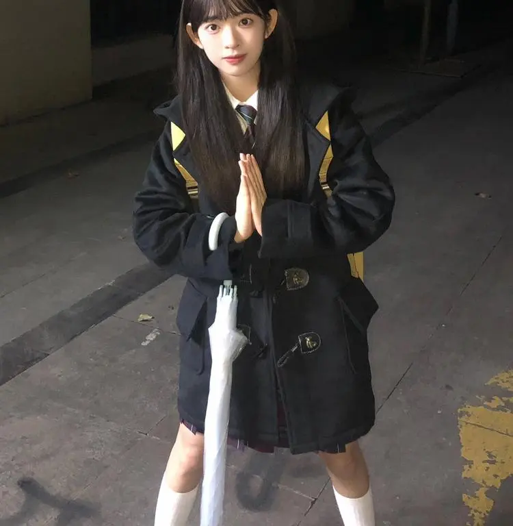 QINGYING Черное пальто из флиса с подкладкой для женщин