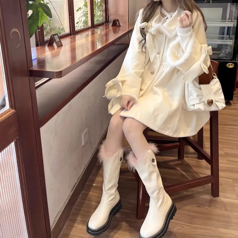 QINGYING Экрю Женское Пальто