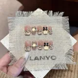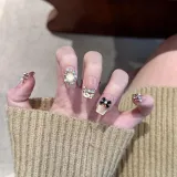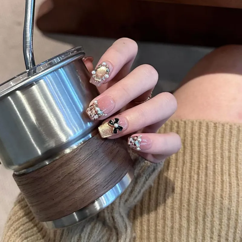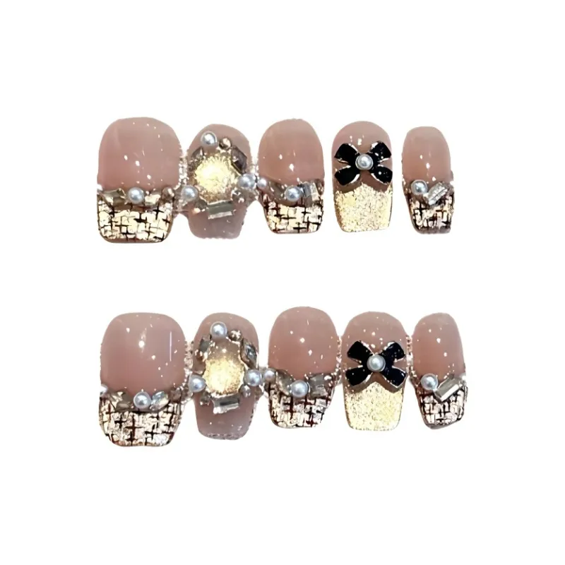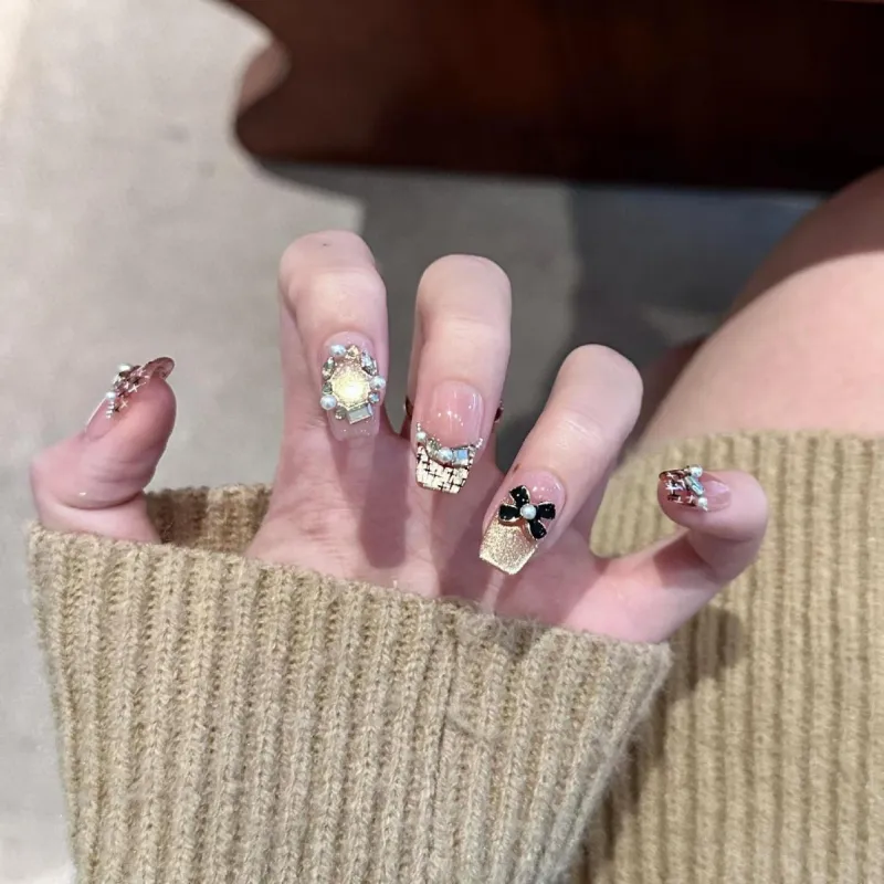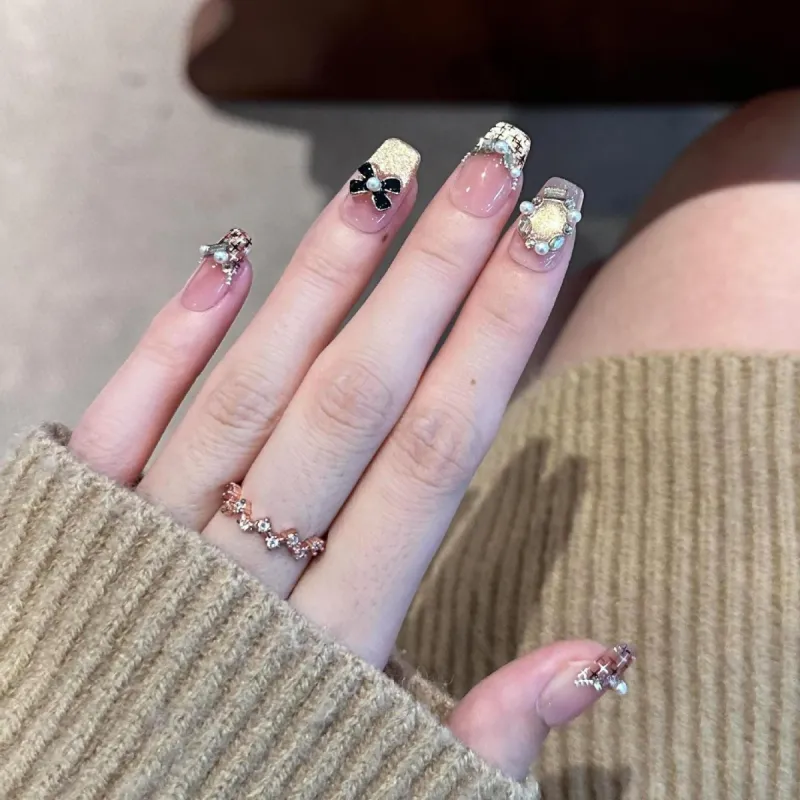 QINGYING Осенний Зимний Холодный Стиль LADY Вдохновленный Chanel Сверкающий Страз Элегантный False Nail Короткий ЛАДДЕР