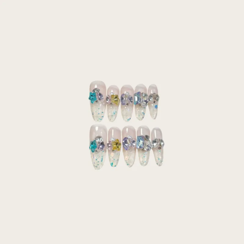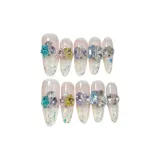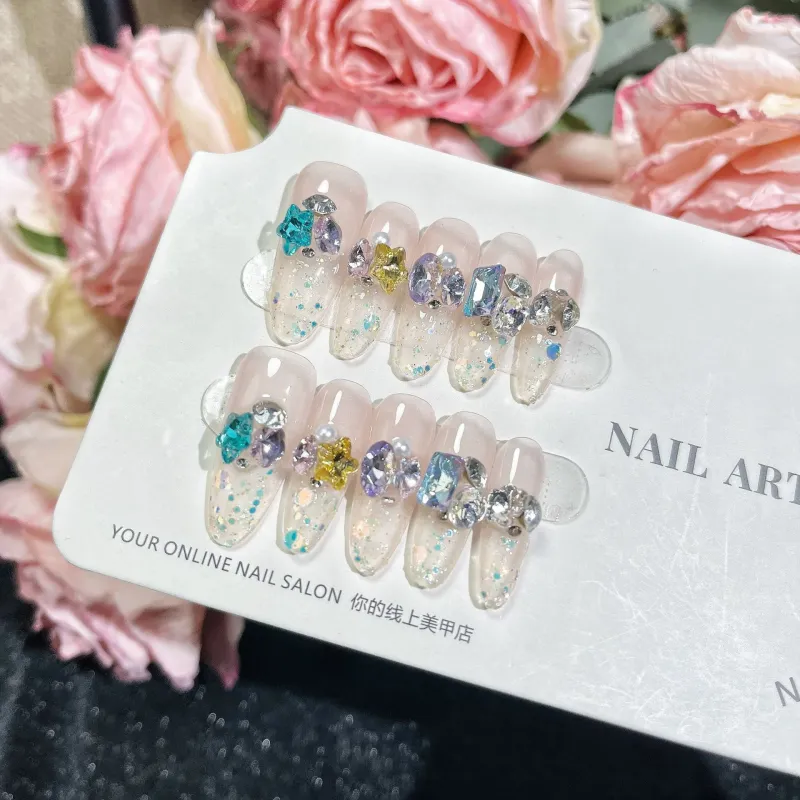 QINGYING Конфетный цвет Сода Цветной страз Осветляющий Летний Универсальный False Nail Длинный Заостренный