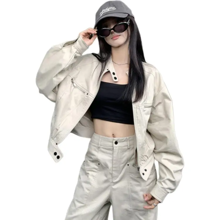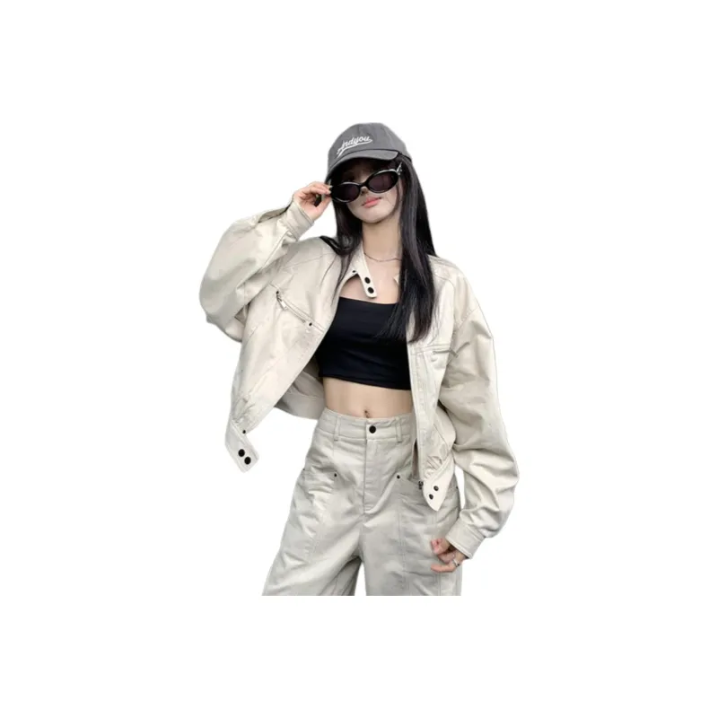 QINGYING Серый Бежевый Топ Женский Куртка