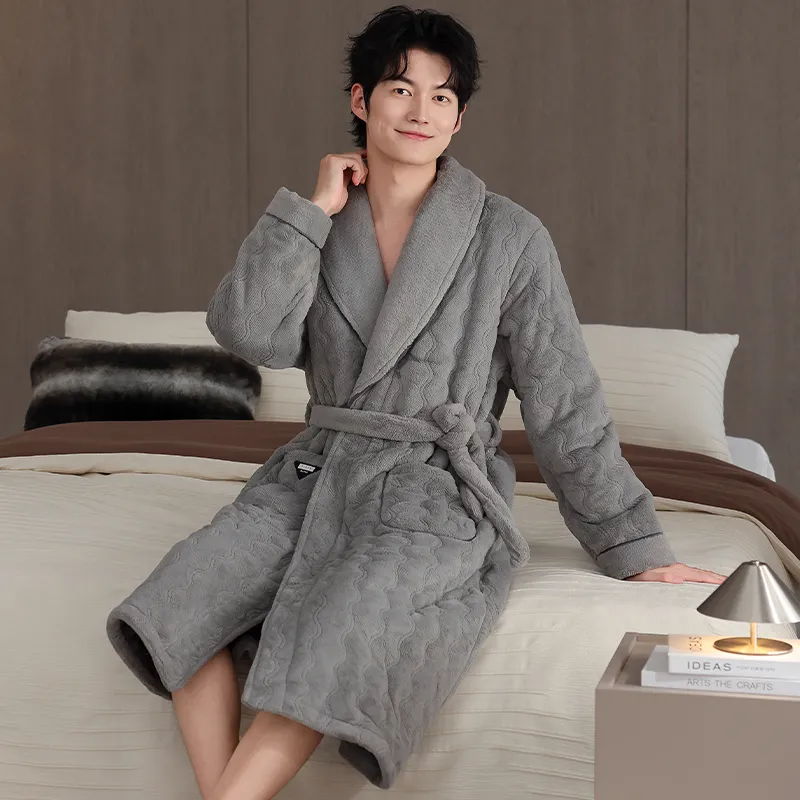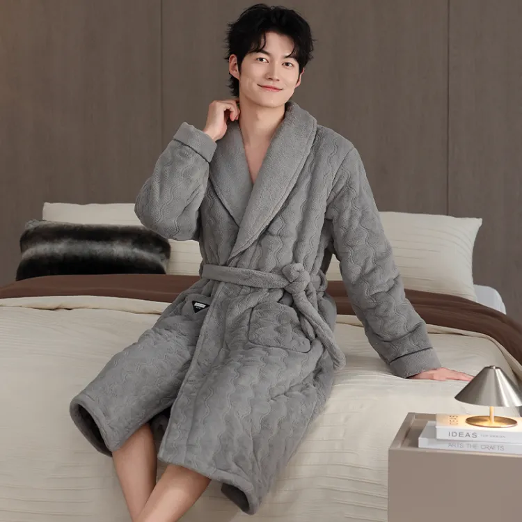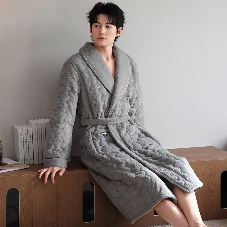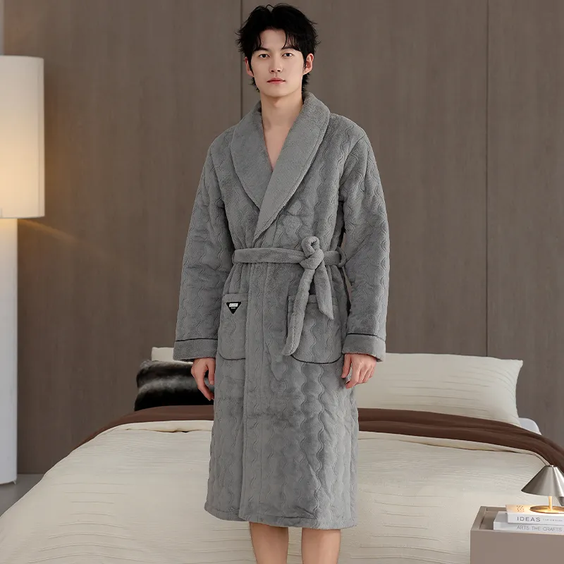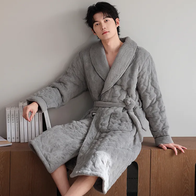QINJING Дымчатый Серый Мужской Халат для ванной
