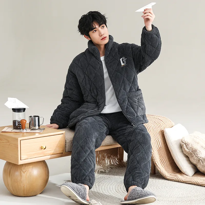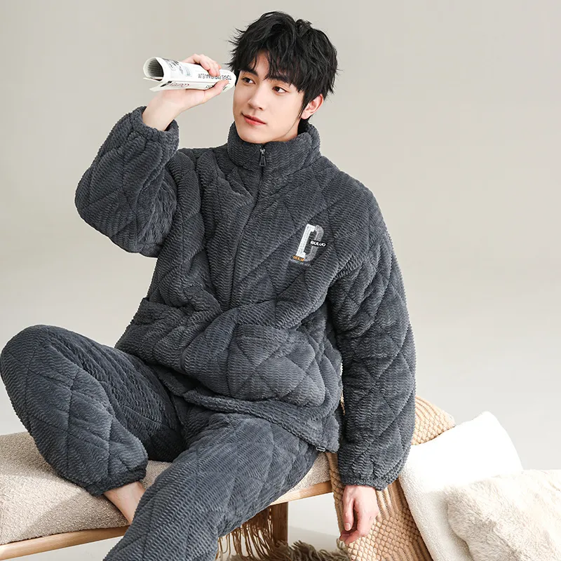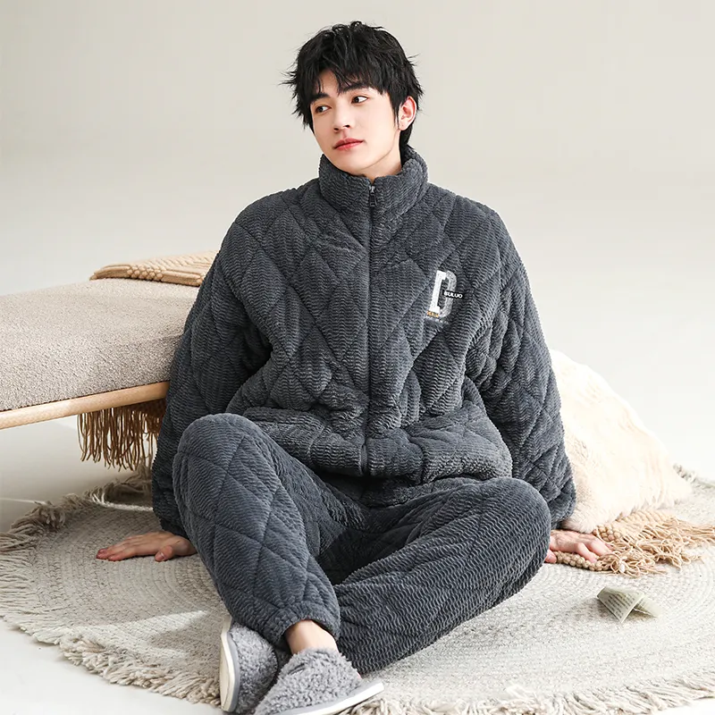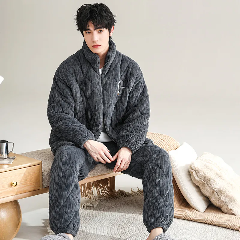 QINJING Серый Синий Мужской Пижамный Комплект