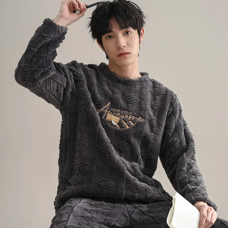 QINJING Дым Серый Мужской Пижамный Комплект