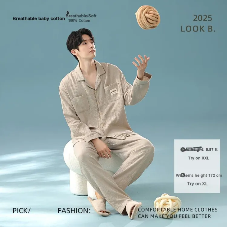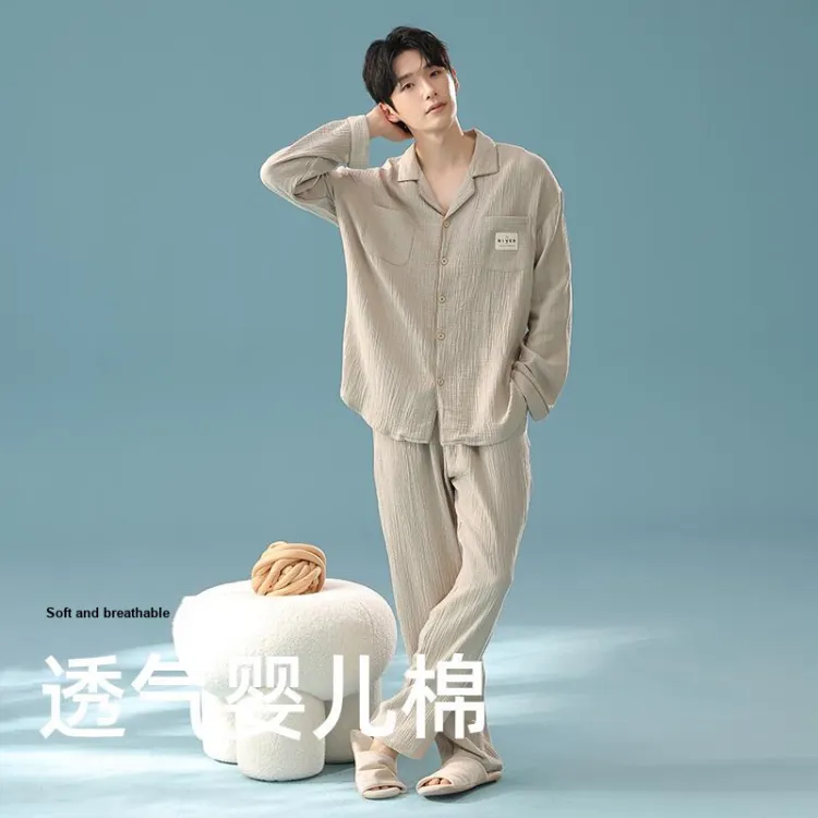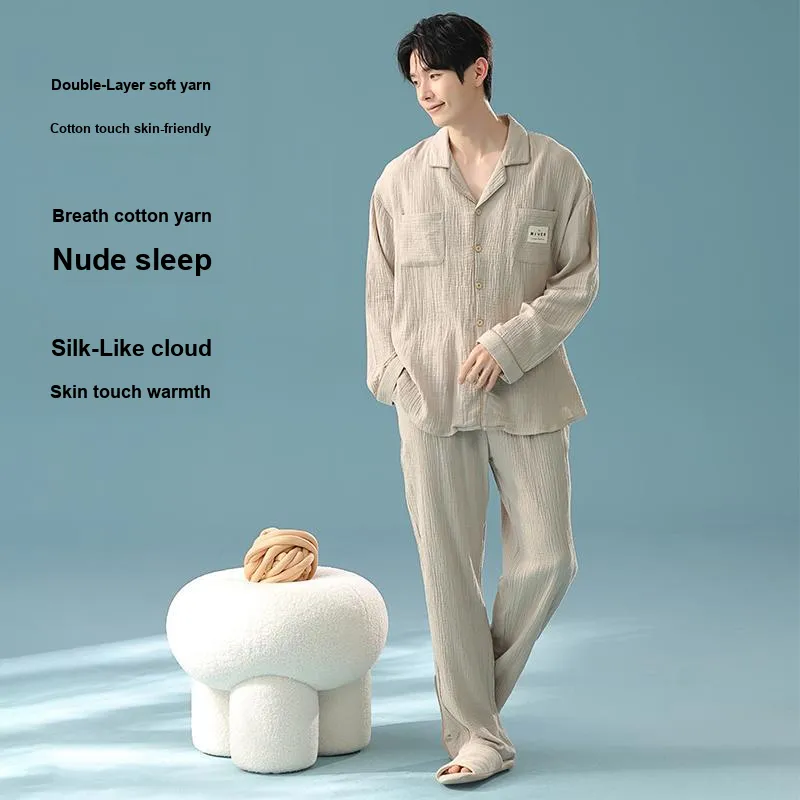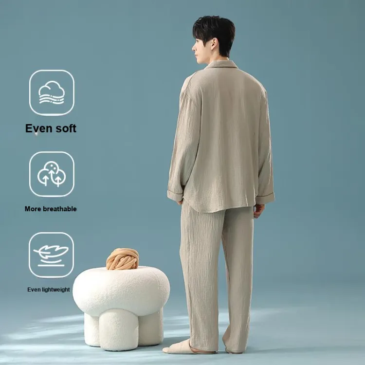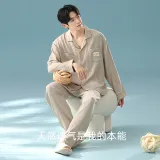 QINJING Серый Абрикос Мужской Пижамный Комплект