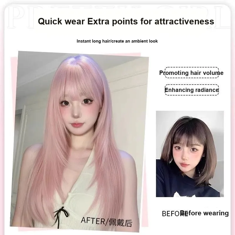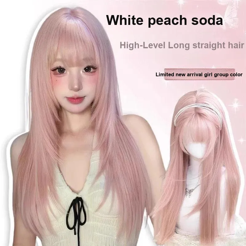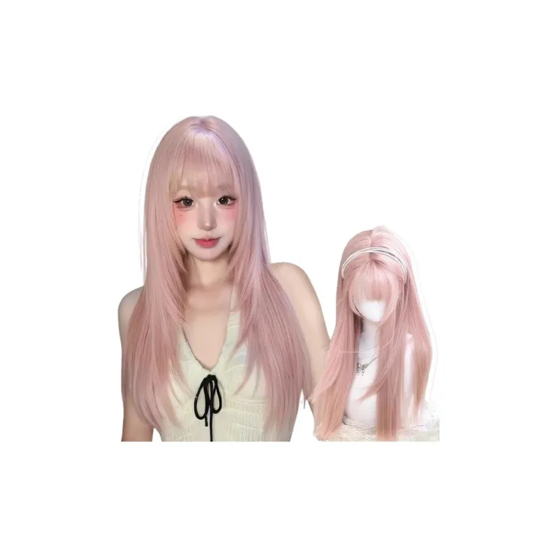 QIYEXUE Лолита Сладкий стиль Женская Перука Высокая температура Пряжа Длинные Прямые волосы