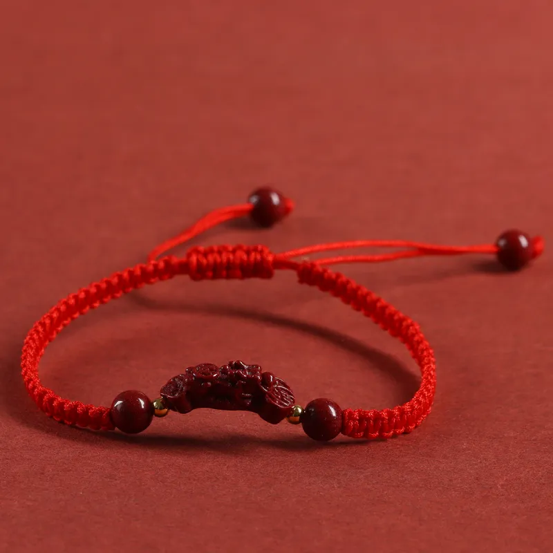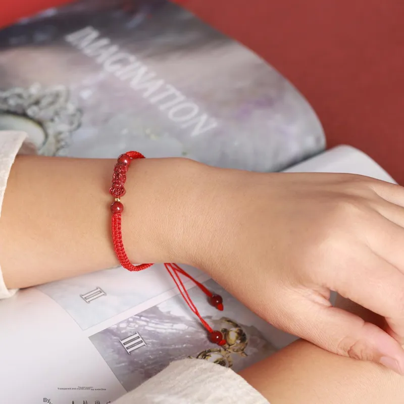 Qiyuanhui Браслет с шнурками из киновари унисекс красный