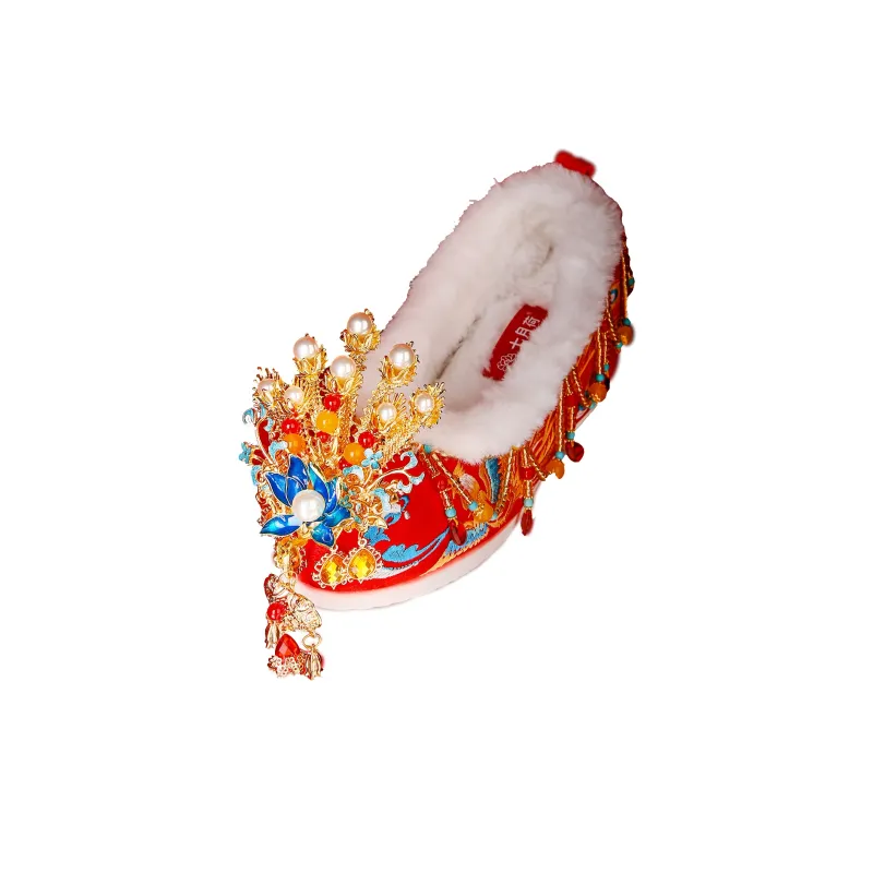 QIYUEHE С флисовой подкладкой ультра-термальная 'Сердце к сердцу' китайский стиль обувь для свадьбы скрытый каблук 6 см