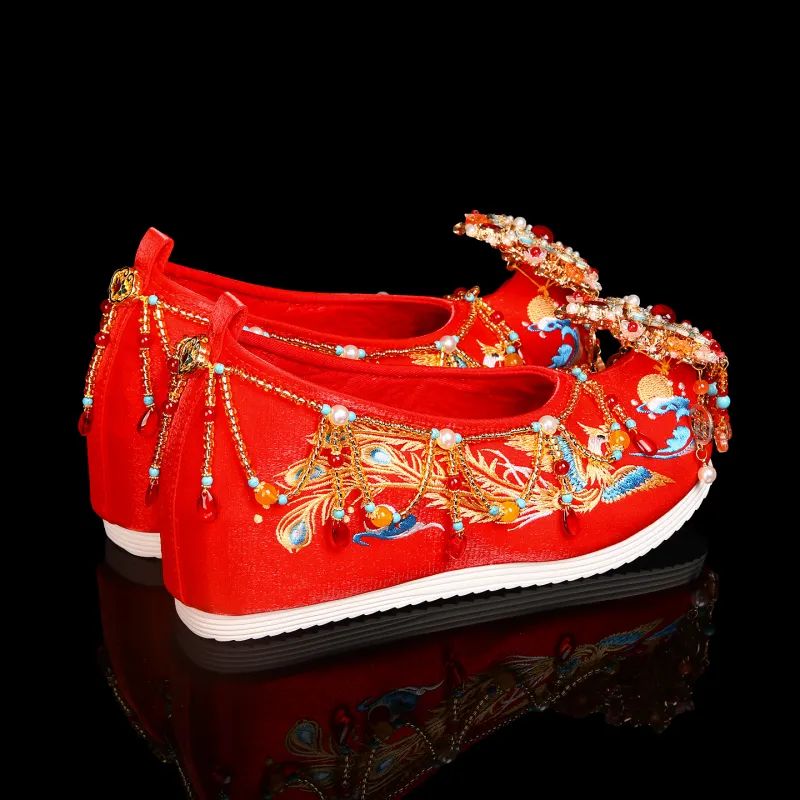 QIYUEHE Оригинальный дизайн [Удача и процветание] С флисовой подкладкой Для теплой зимы Свадебная обувь 6 см Женская