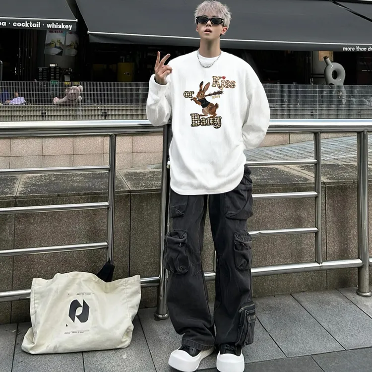 Qnxeey Длинный рукав T-рубашка унисекс