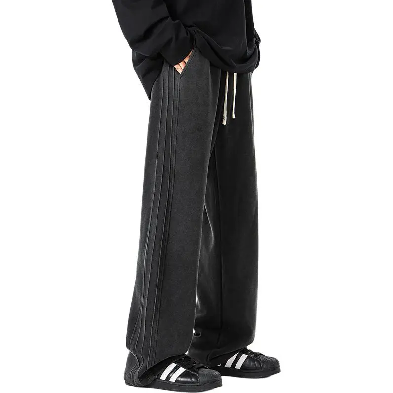 QOTRIOCK Повседневные брюки Мужские Выстиранный Черный