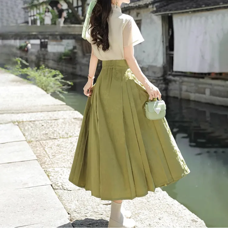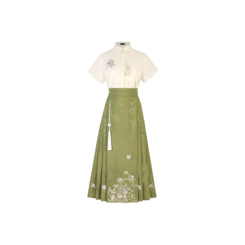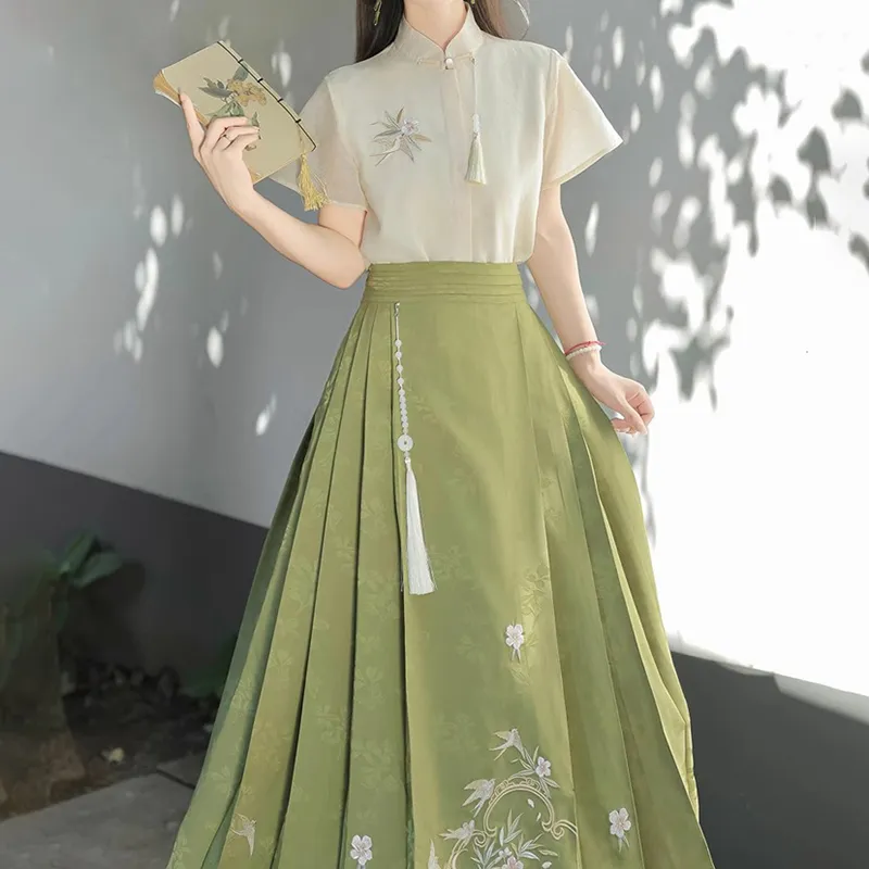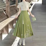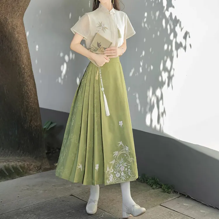 Короткий рукав + китайская юбка с узором "конское лицо" (включая украшение)