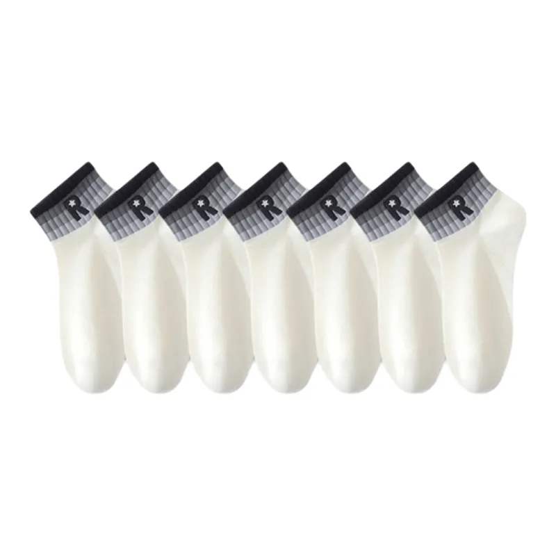[7 Pack, Viral Style · Светлые Модные Носки] Черный 7