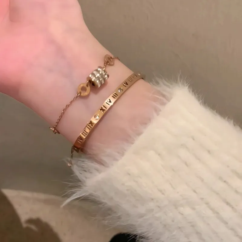 Римские цифры, маленькая круглая подвеска, тонкая талия, многослойность, браслет