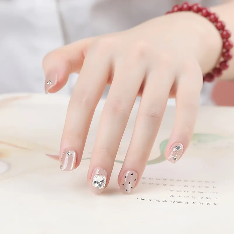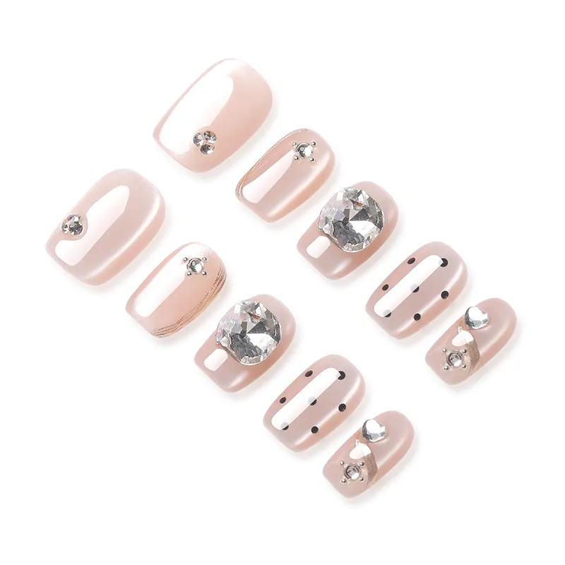 QUIET MOON Фантастический Land False Nail Короткий LADDER Милый Кошачий глаз Гороховый узор 10 шт 14mm