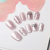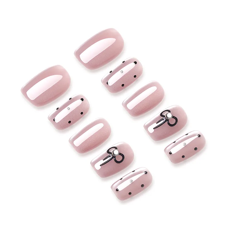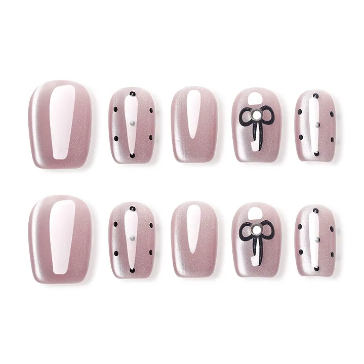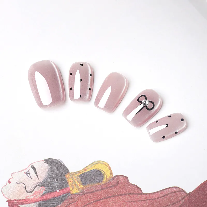 QUIET MOON Hepburn Стиль False Nail Короткий LADDER Милый Кошачий глаз Бант Гороховый узор 14mm