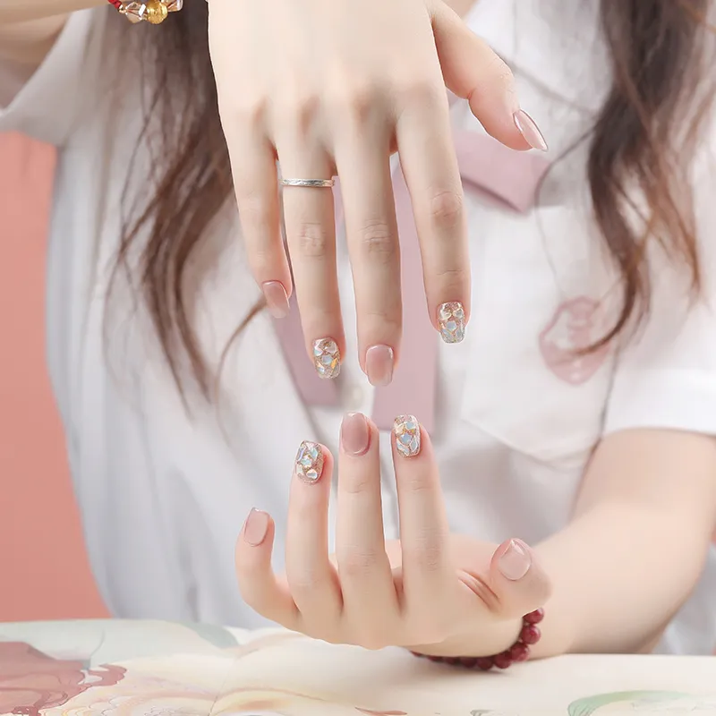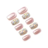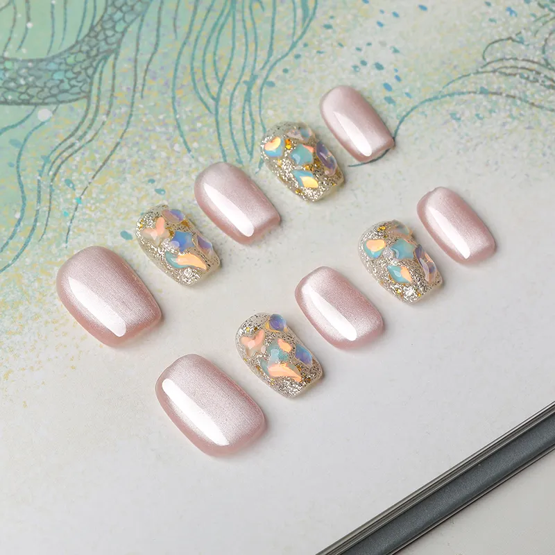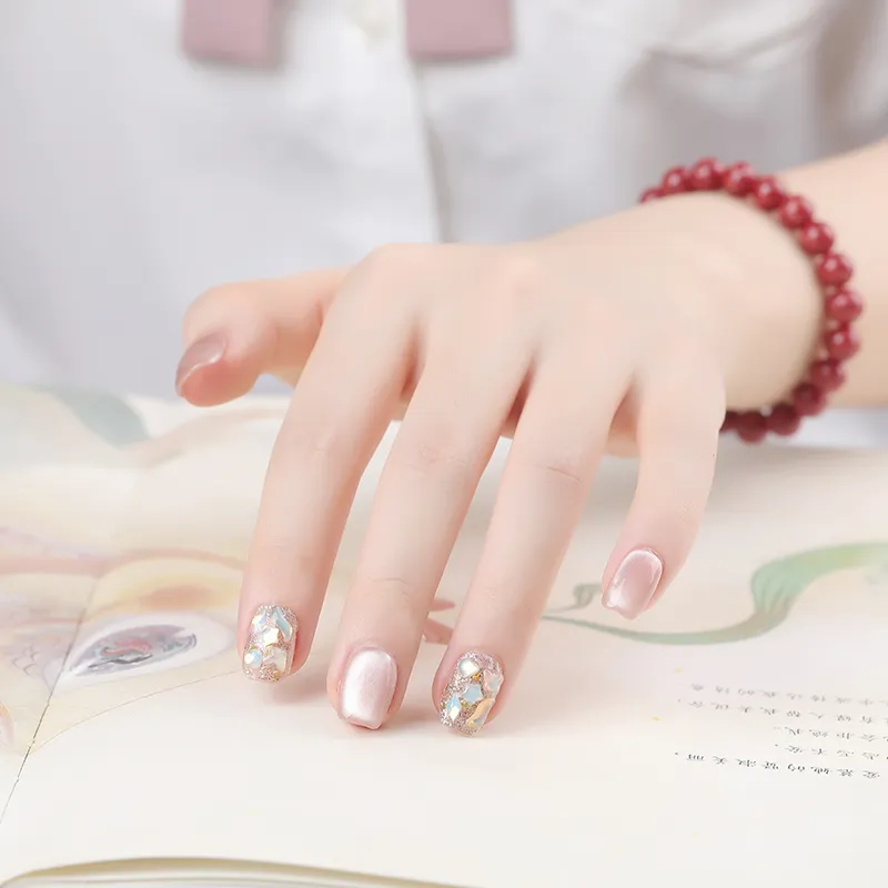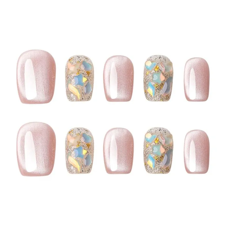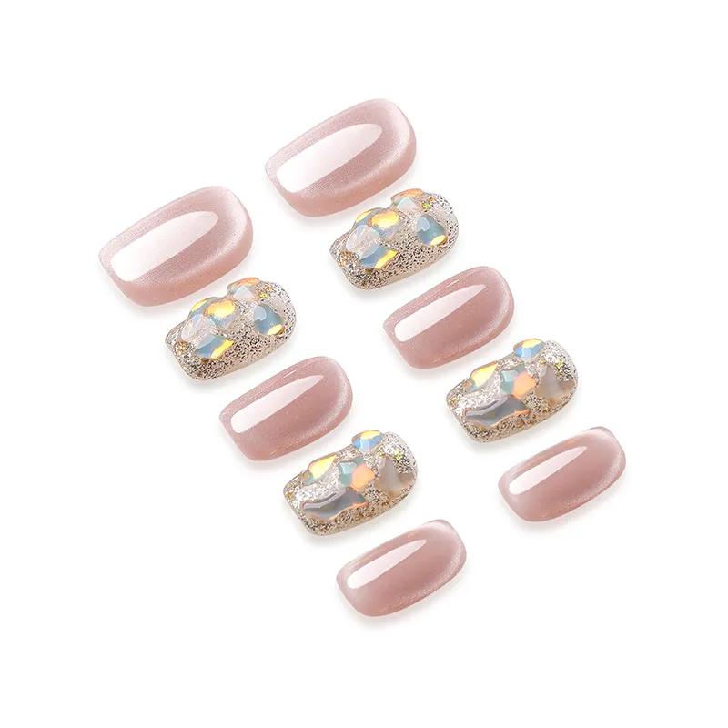 QUIET MOON Жасмин Попурри False Nail Короткий Розовый Jump Цвет Кошачий глаз 10 шт 1 комплект 14 мм
