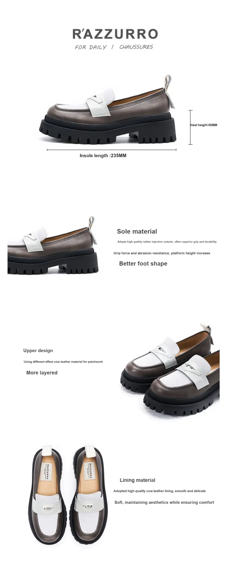 R'AZZURRO Лоферы 6 см Женские Серый и Коричневый