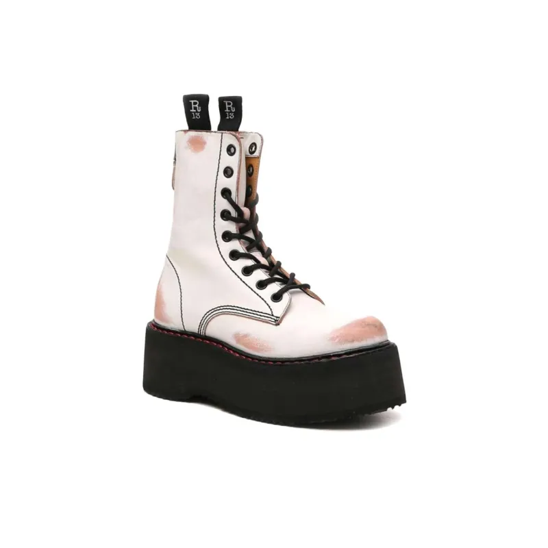 R13 Короткий Мартин Boot Женские Белые И Медно-черные
