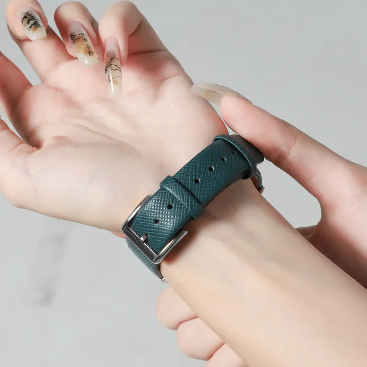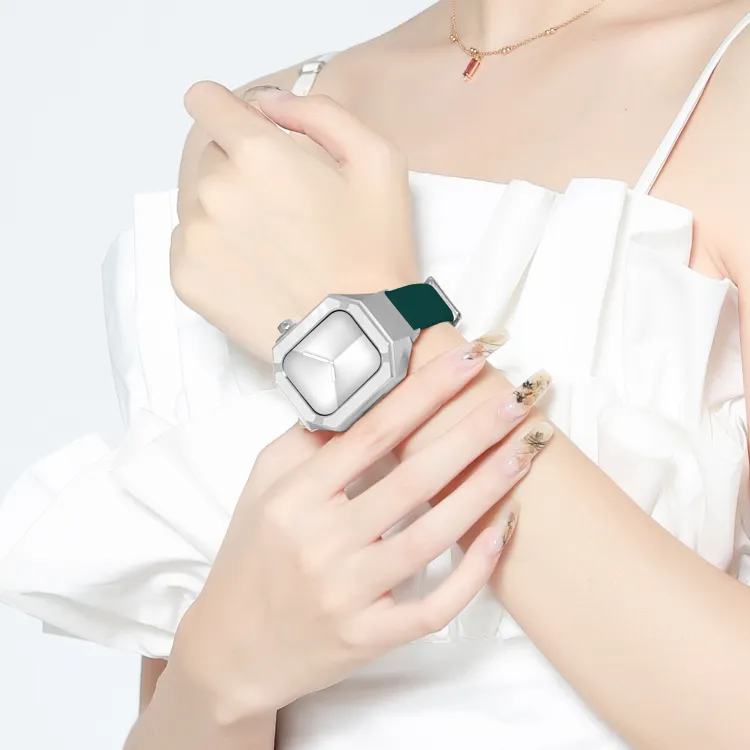 Серебряный корпус из нержавеющей стали с зеленым ремешком