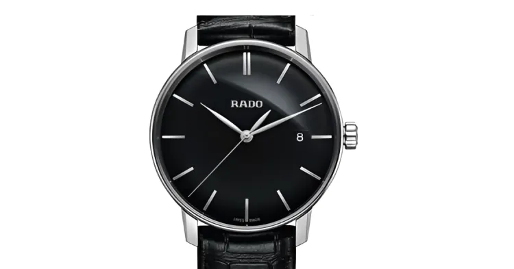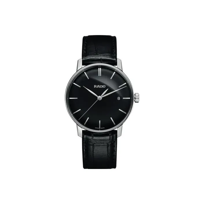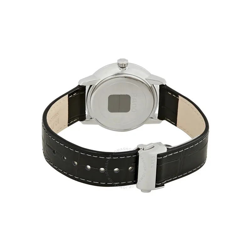 RADO Crystal Sparkle Collection Кварцевый механизм Унисекс Часы 38 мм Черный циферблат Корпус из нержавеющей стали Кожаный ремешок
