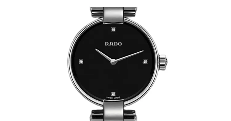 RADO Crystal Sparkle Collection Кварцевый механизм Женские часы 27 мм Черный циферблат Корпус из нержавеющей стали