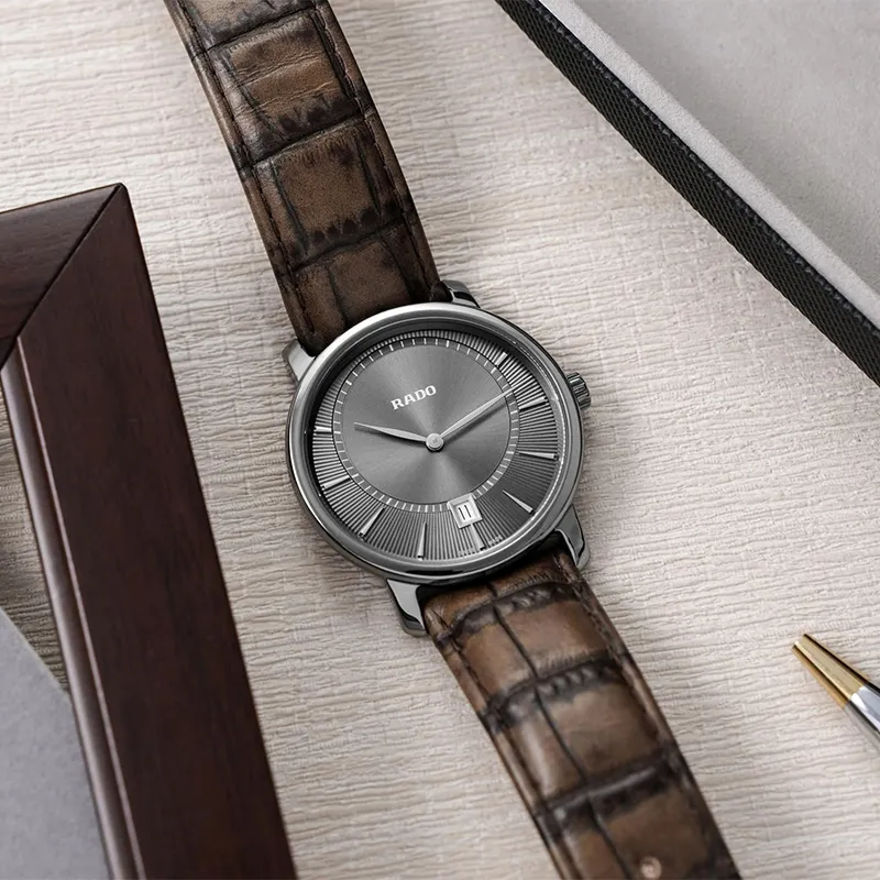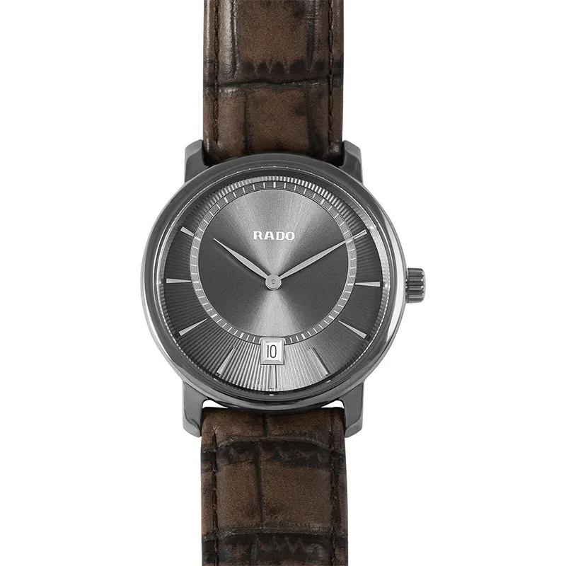 RADO DiaMaster Collection Кварцевый механизм Мужские часы Часы 40 мм Коричневый циферблат Часы Керамические Корпус Часы Кожаный ремешок