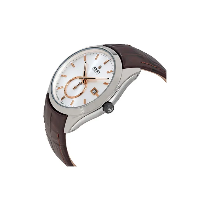 RADO Glam Slam Collection Кварцевый механизм Мужские часы Часы 42 мм Серебристый циферблат Керамика Корпус Часы Кожаный ремешок
