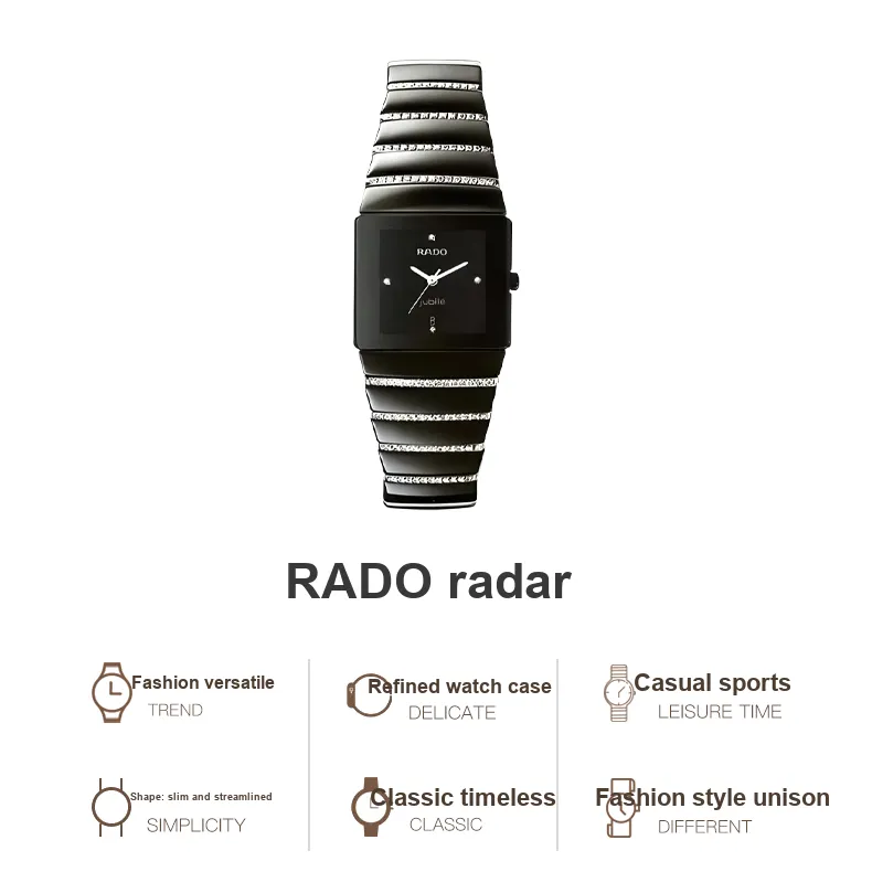 RADO Silver Diamond Collection Кварцевый механизм Мужские часы Часы Черный циферблат Керамика Корпус часов