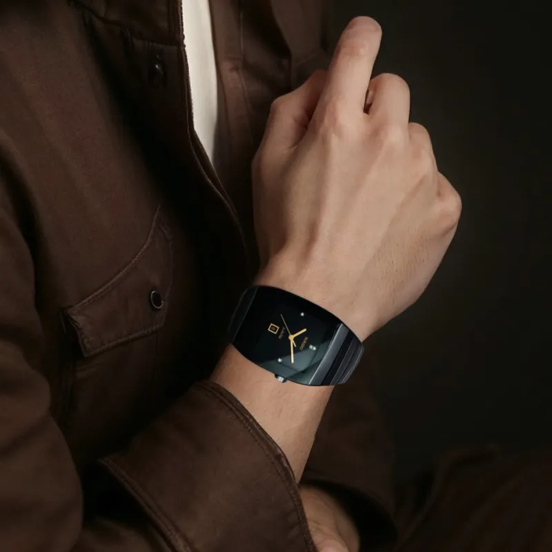 RADO Silver Diamond Collection Кварцевый механизм Мужские часы Часы 32,4*41,4 мм Черный циферблат