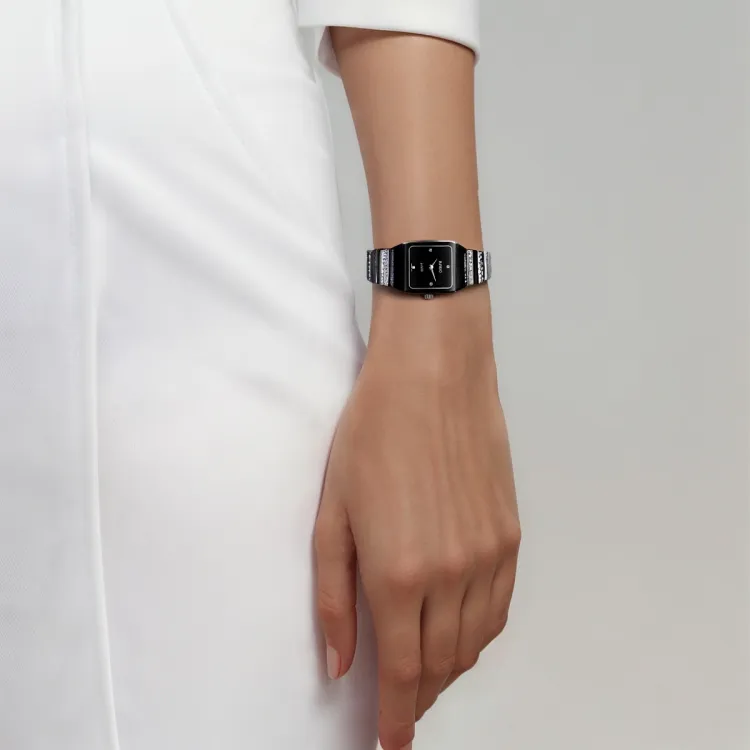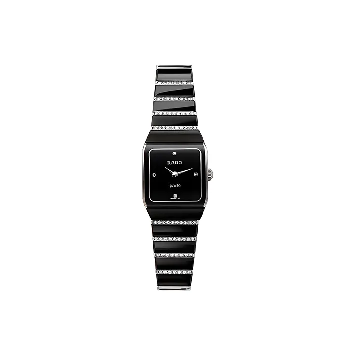 RADO Кварцевый механизм Женские часы 20*24 мм Черный циферблат Керамические корпуса Керамический ремешок