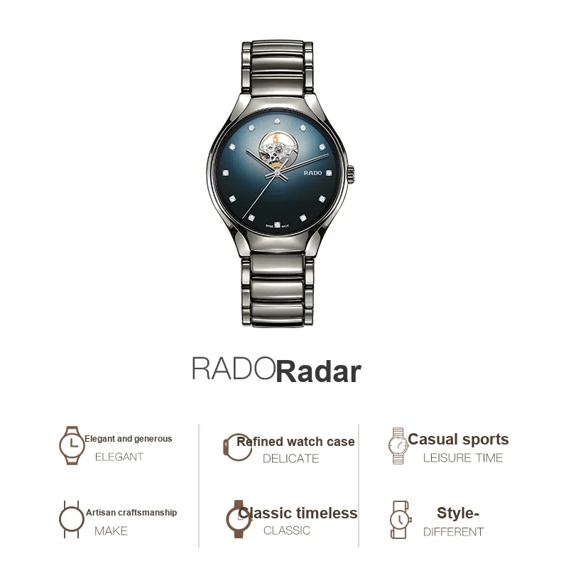 RADO Realme Collection Автоматический Механический Механизм Часы Унисекс 40 мм Синий Циферблат