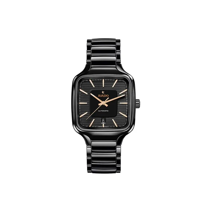 RADO True Square Collection Автоматический Механический Механизм Унисекс Часы 38 мм Черный Циферблат Титан Корпус Часов