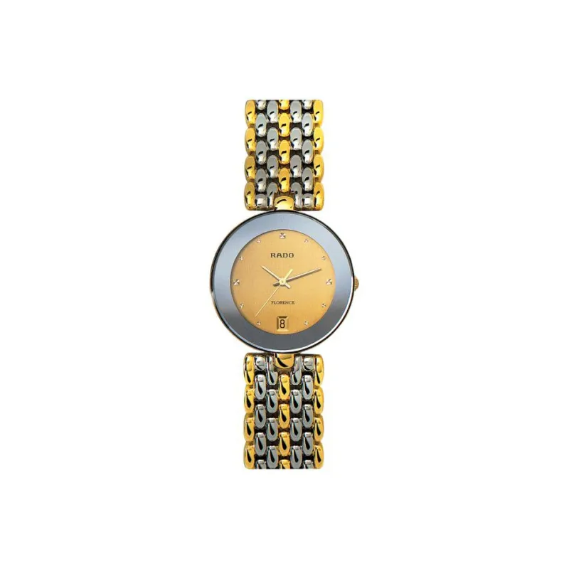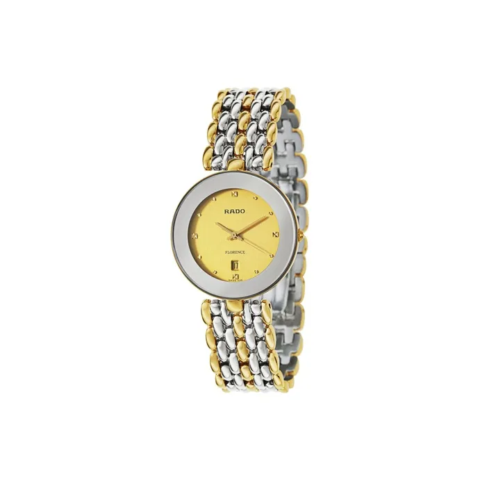 RADO Florence Collection Кварцевый механизм Женские часы 35 мм Золотой циферблат Корпус из нержавеющей стали Ремешок из нержавеющей стали