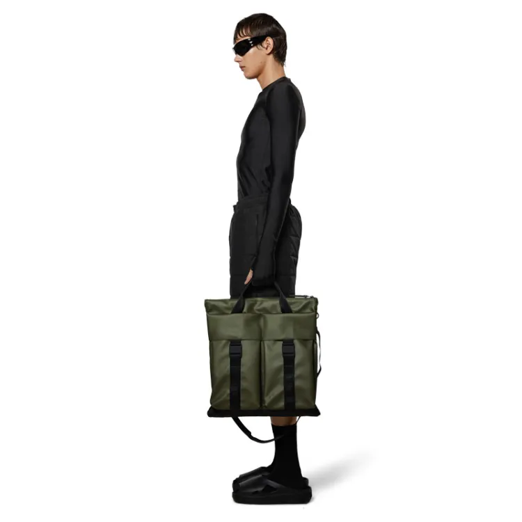 Rains Полиэстер Сумка для покупок Большая Унисекс Черная Зеленая
