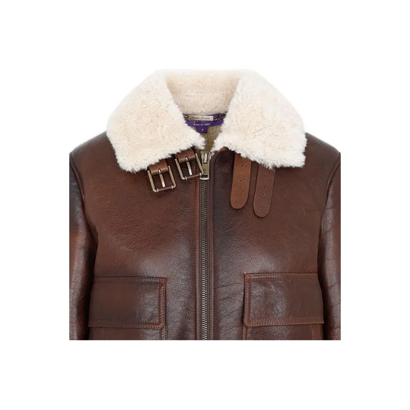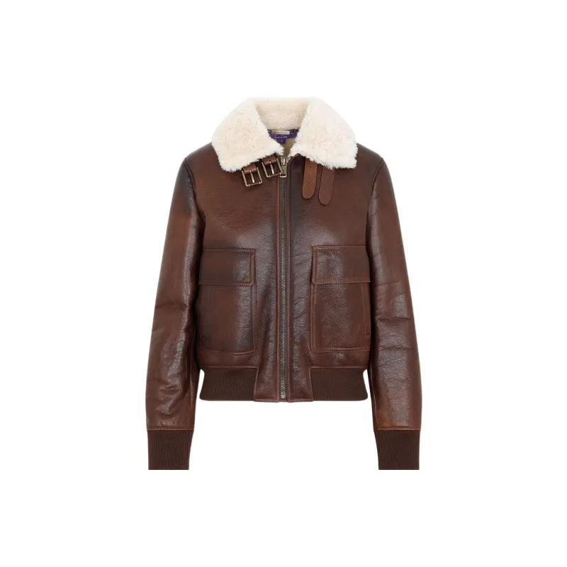 Ralph Lauren кожаная куртка женская коричневого цвета