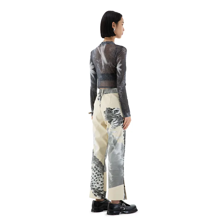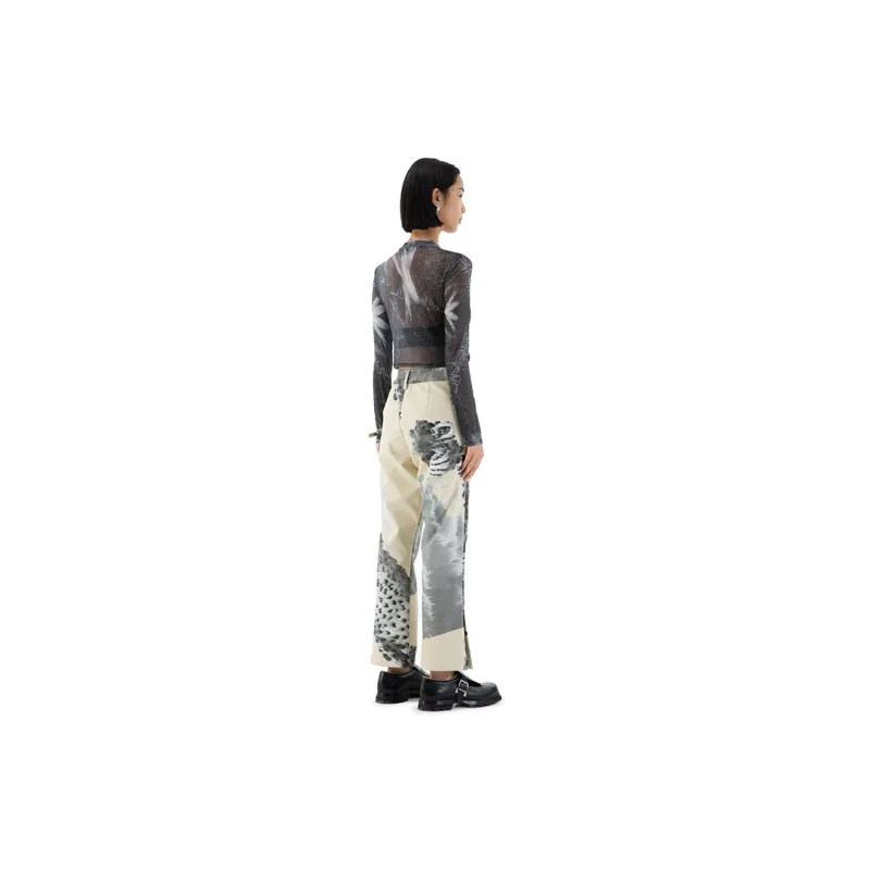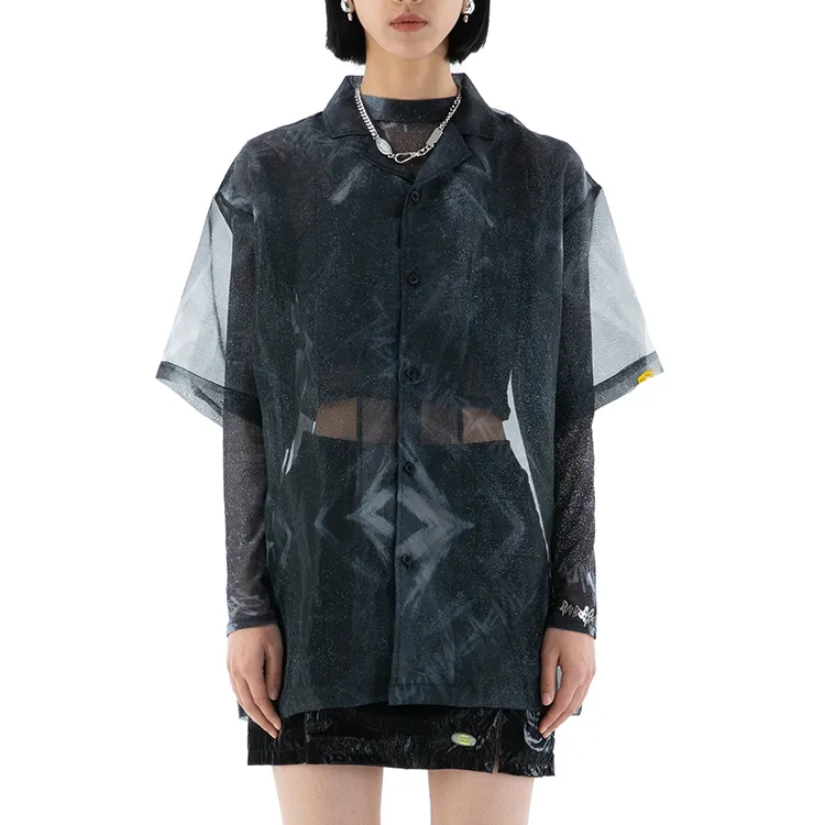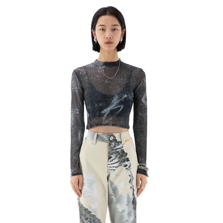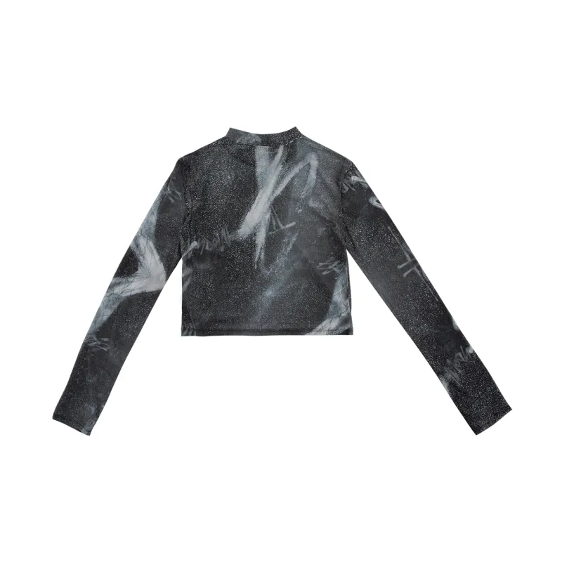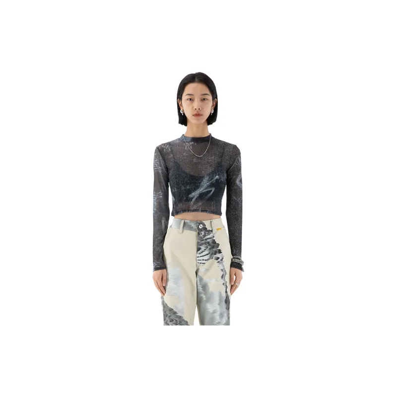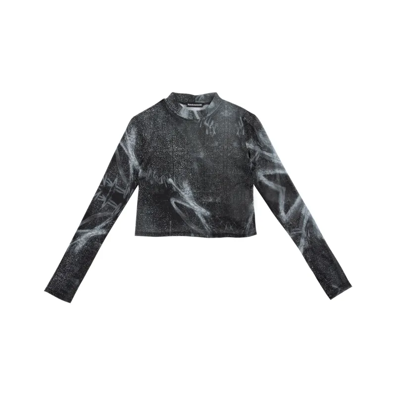 RANDOMEVENT Прямой крой Длинный рукав Т-рубашка Женская Черная