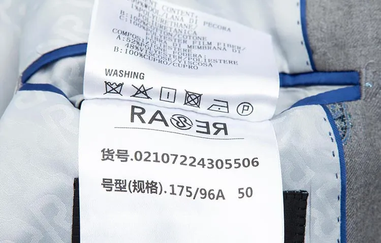 Ткань: Основная ткань: 99% овечья шерсть, 1% эластан, 1% жаккардовая пряжа (Синий): 100% хлопок, жаккардовая пряжа 2 (Металлическая пряжа): 100% полиэстер, фильм волокно. Подкладка 1: 52% полиэстер, 48% вискоза, подкладка 2: 100% купро (за исключением остальных)