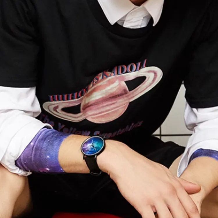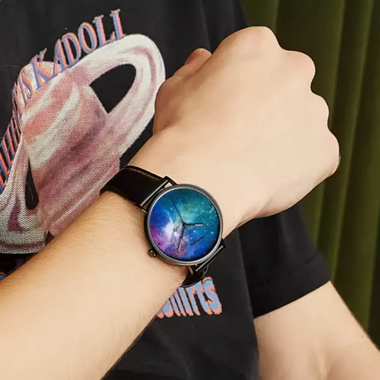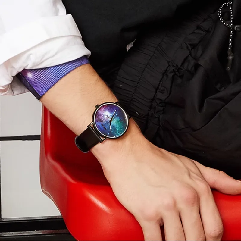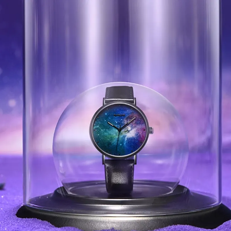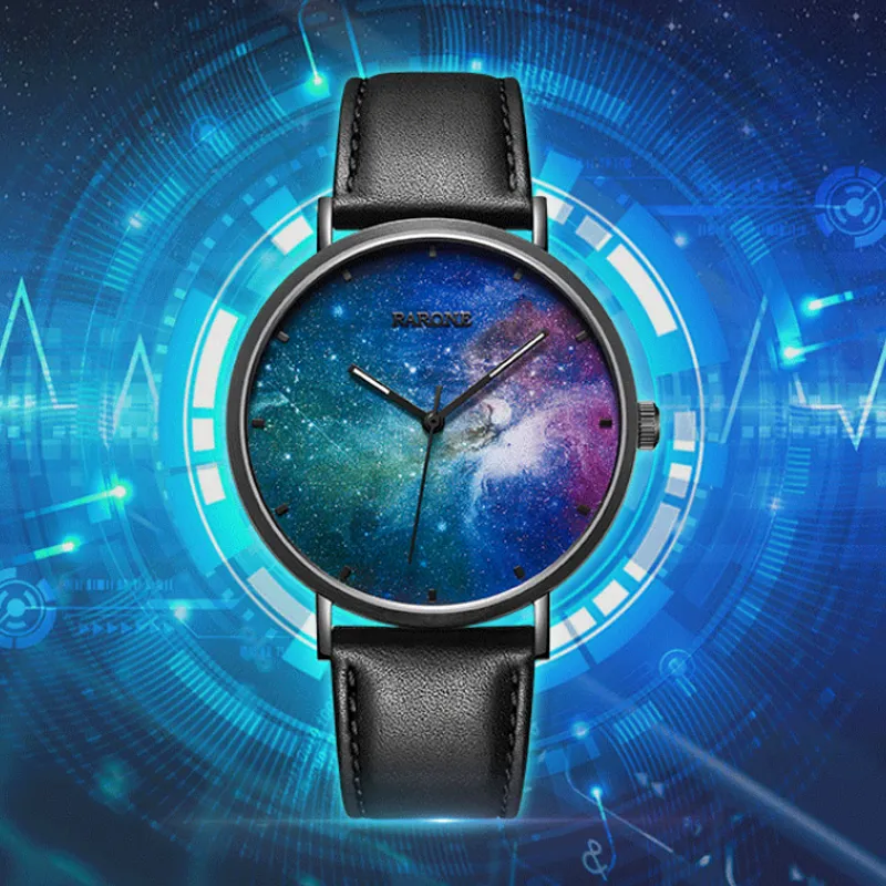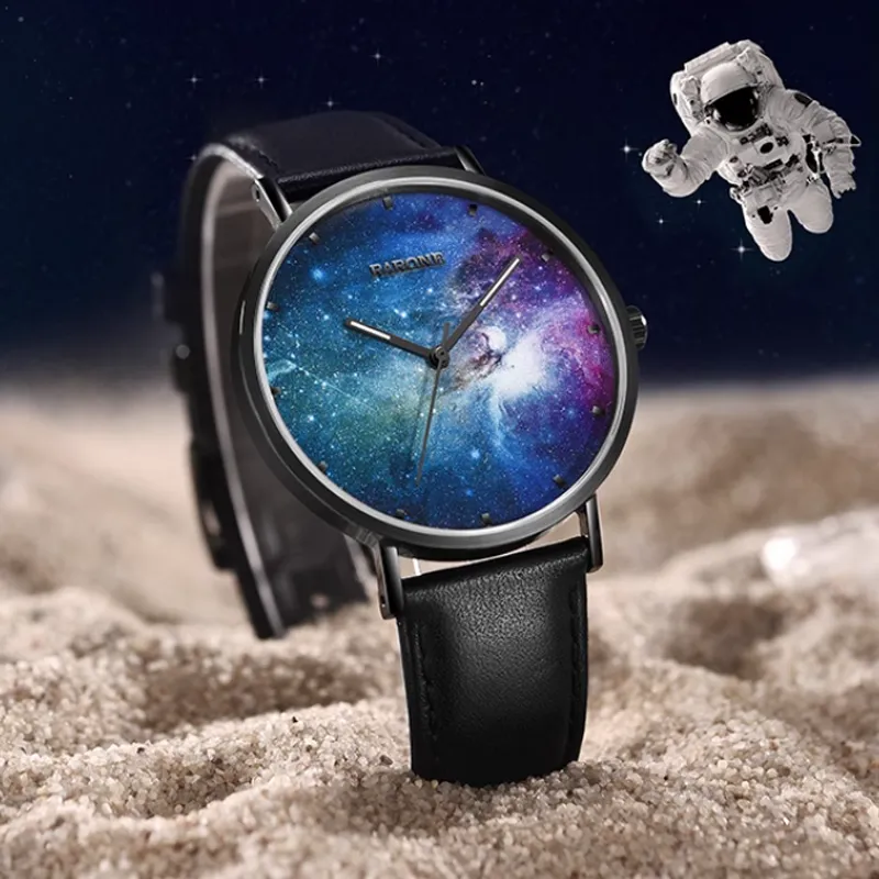 RARONE Interstellar Series Starry Sky Кварцевый механизм Естественная кожа Ремешок Часы Мужские Многоцветный циферблат часов
