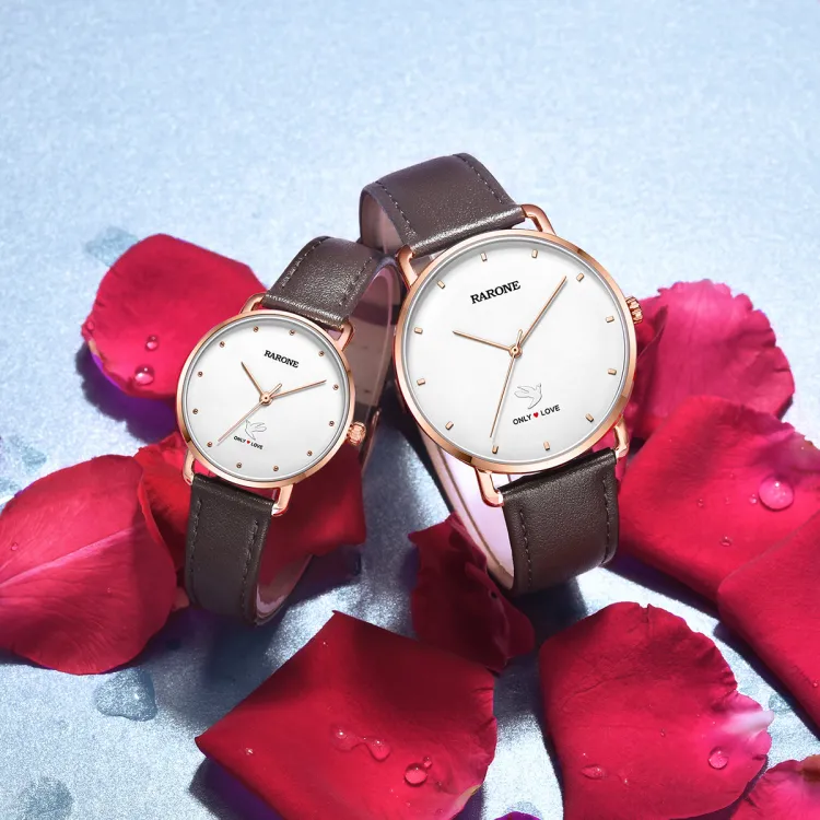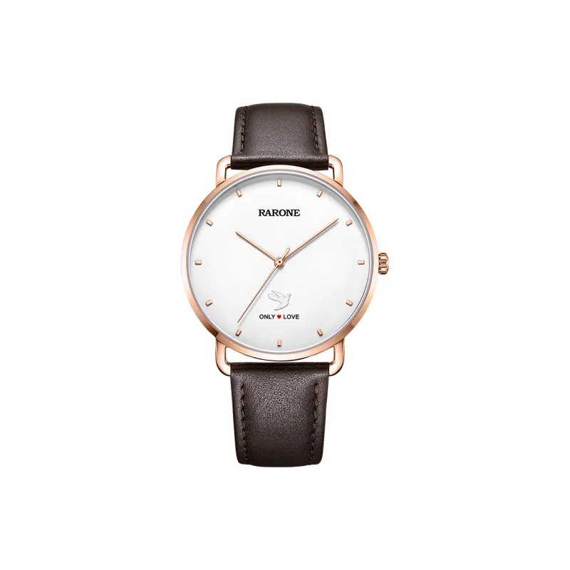 RARONE Only Love Collection Несовпадающие Панель To Панель Кварцевый механизм Натуральная кожа Ремешок Часы Унисекс Белый циферблат